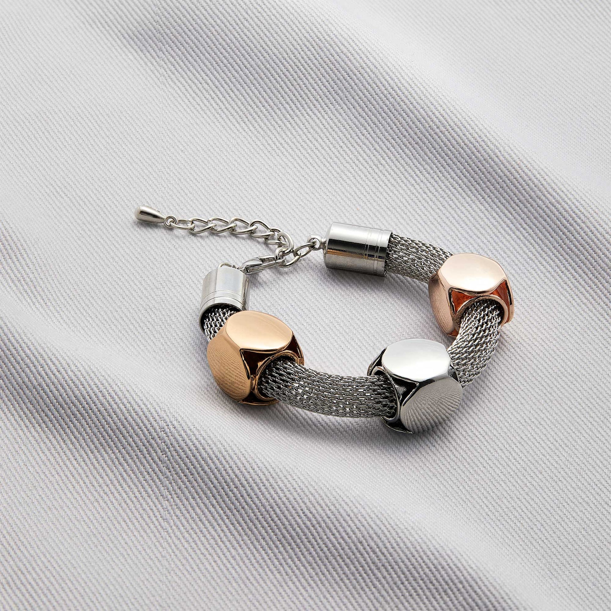 The exquisite bracelet featuring a beautiful metal mesh bangle.