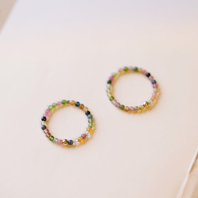 Ultra-fine 2mm Raw Stone Rainbow Tourmaline Ring