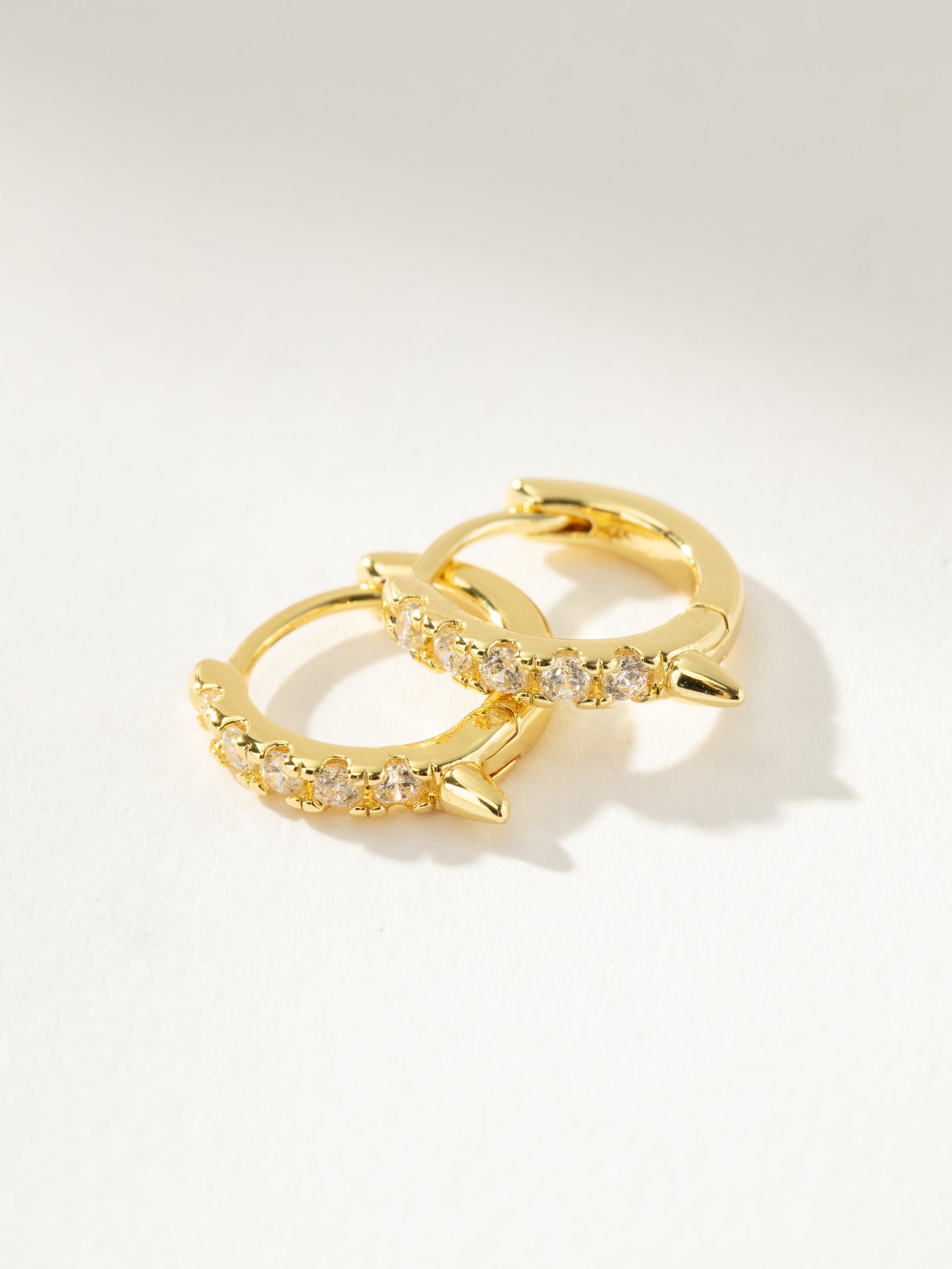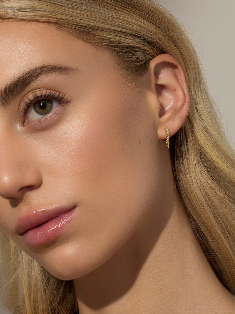 Your style will be untouchable with these small gold hoop earrings featuring a stud and row of pavé.