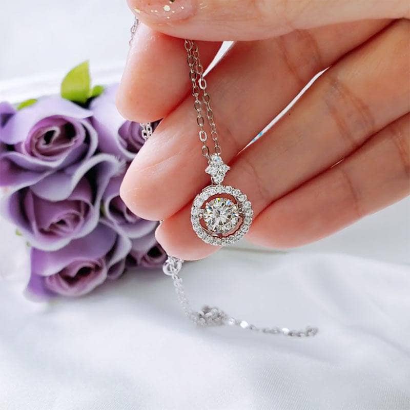 This stunning necklace has a unique sparkle setting, our necklace features moissanite diamonds that dance and sparkle in natural light. The pendant is made of 925 sterling silver chain with a rhodium finish for long lasting shine. Our moissanite diamond necklace is suitable for any holiday as a gift.