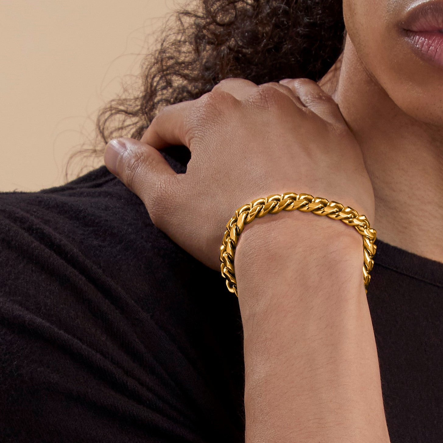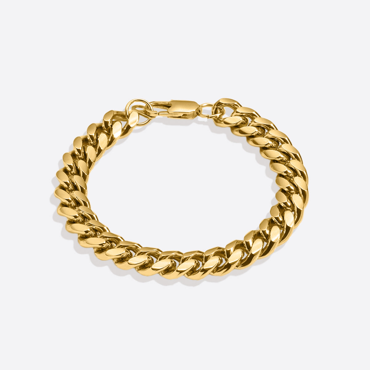The classic Cuban Chain Bracelet, made to go wherever you do. Make a statement without saying a word. Smart, stylish, and beautifully crafted with 18k Gold and our proprietary plating for superior corrosion and scratch resistance. Don't compromise on style or durability - with Mint & Lily, you can have it all.
