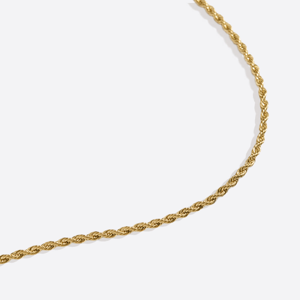 Start your stack with the classic shine of our 2mm Rope Chain. Designed to be worn everywhere, our Rope Chain necklaces are the perfect addition to your everyday look. Smart, stylish, and beautifully crafted with 18k Gold and our proprietary plating for superior corrosion and scratch resistance. Don't compromise on style or durability - with Mint & Lily, you can have it all.