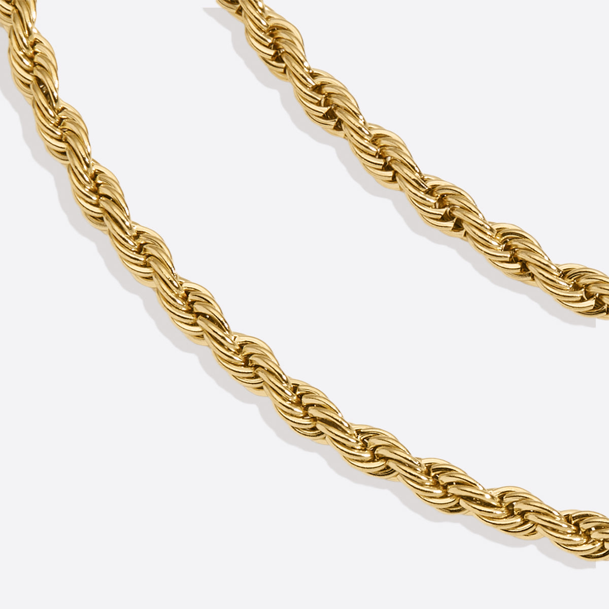 The classic rope chain necklace: effortless shine for a tasteful addition to any stack. Smart, stylish, and beautifully crafted with 18k Gold and our proprietary plating for superior corrosion and scratch resistance. Don't compromise on style or durability - with Mint & Lily, you can have it all.