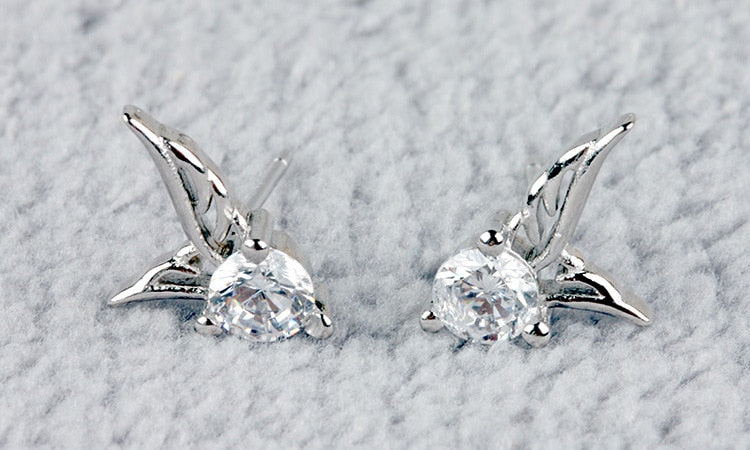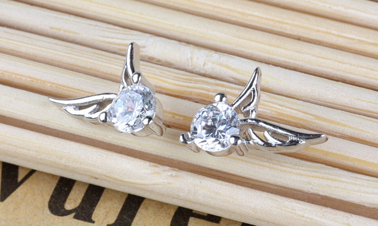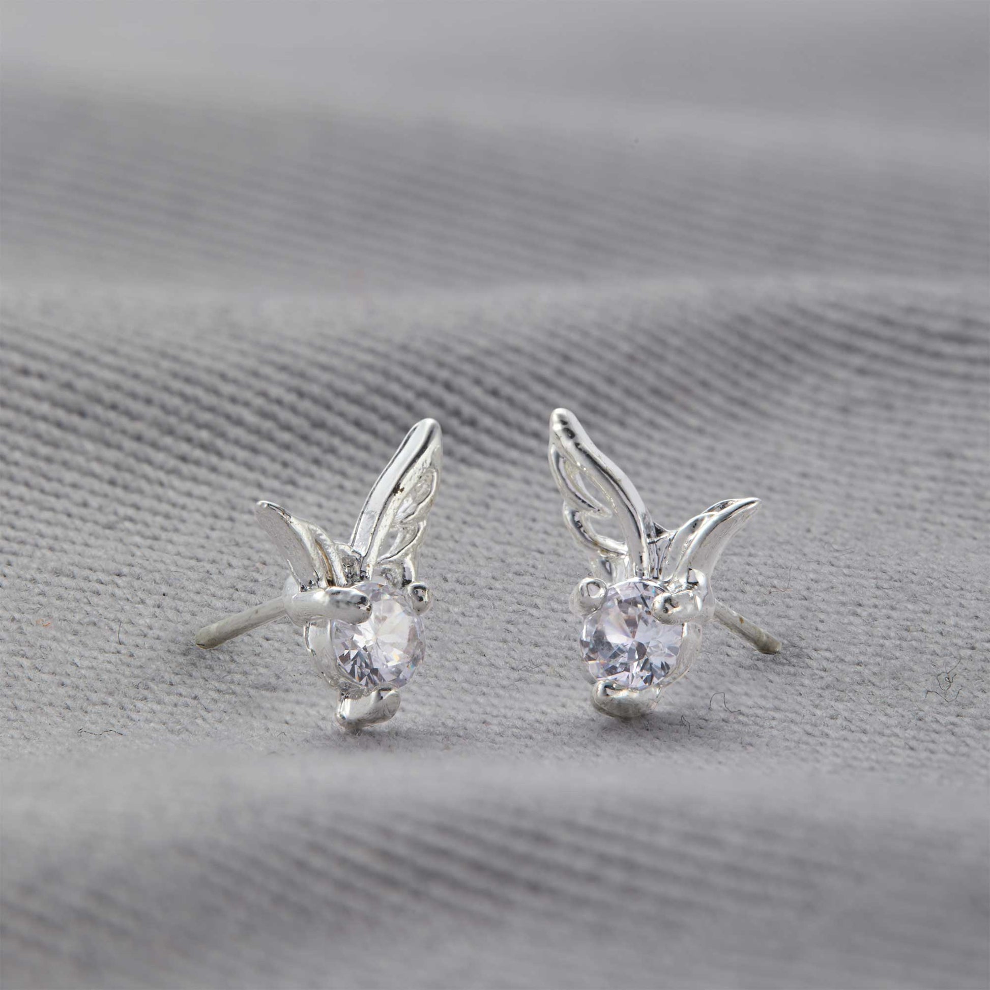 Silver-plated crystal earrings with angel wings are a beautiful way to remember to ask yourself what your guardian angel would say if they were there with you at any moment. Comes as a pair.