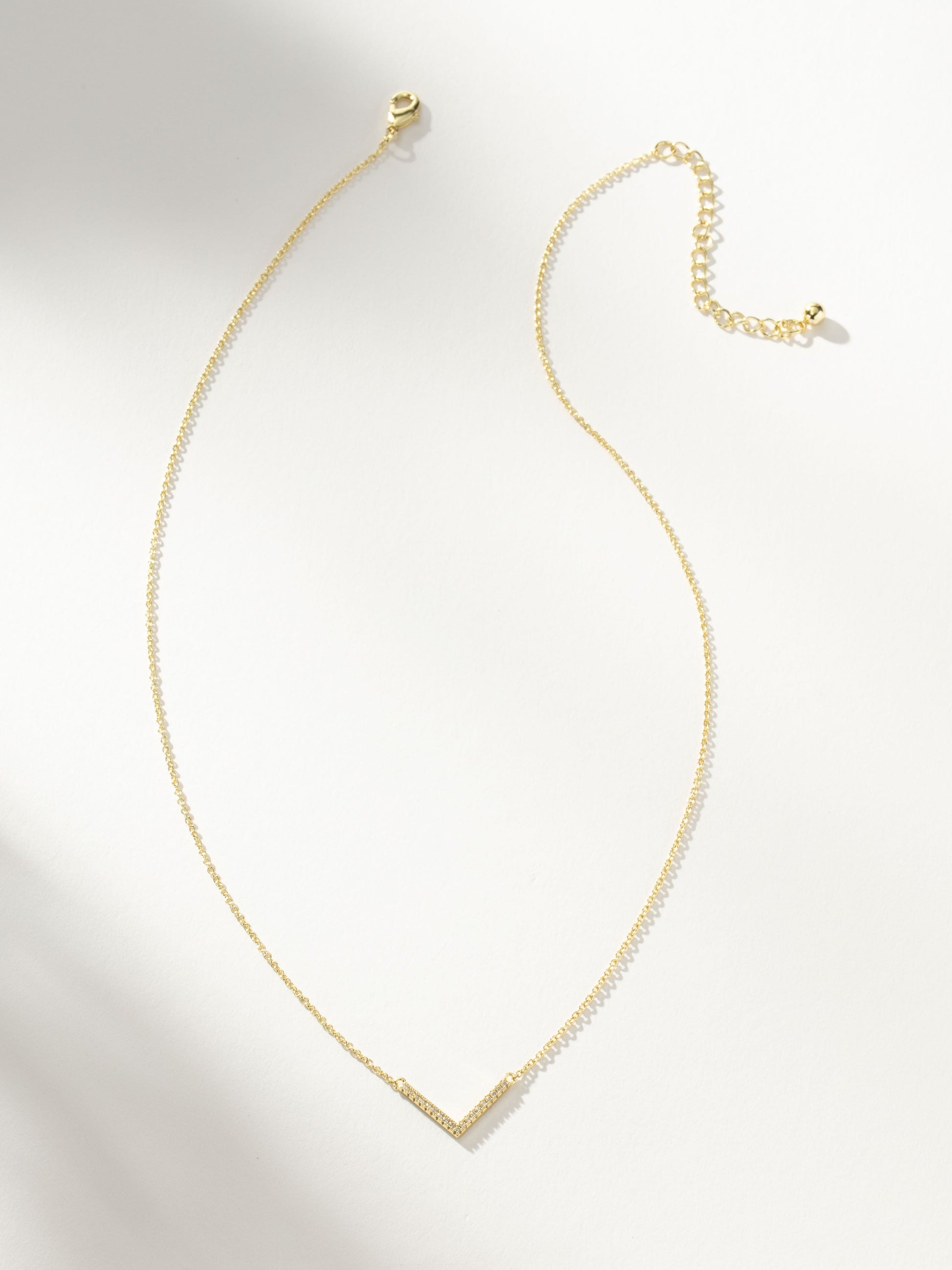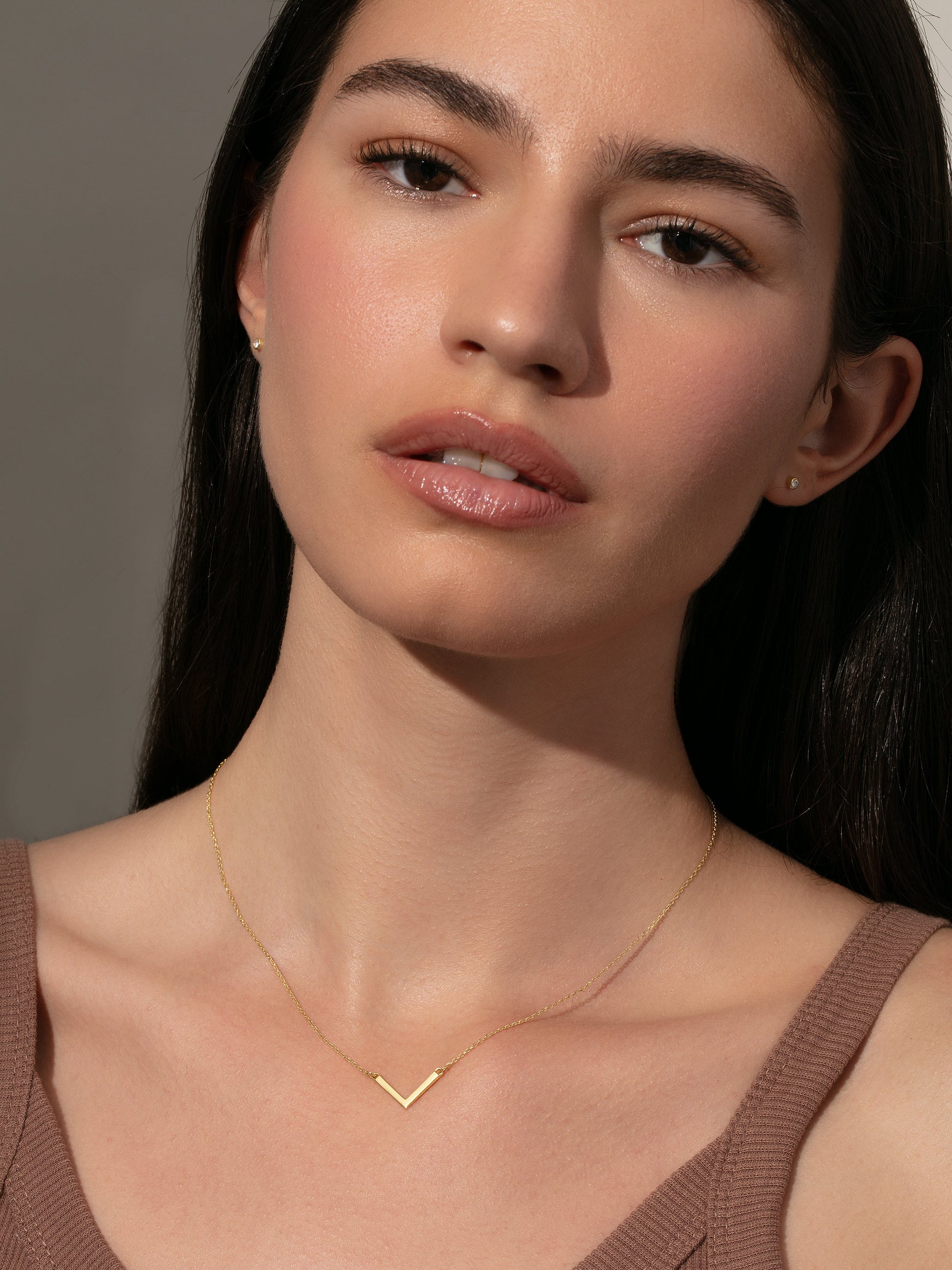 Our Baby V Necklace is a timeless piece everyone needs in their jewelry collection. Crafted with a dainty chain necklace and a V bar, this best-selling necklace makes the perfect layering piece. Take your pick from a solid gold V or a shiny pavé V, then layer this dainty necklace with all of your other favorite necklaces for a stack everyone will be jealous of.