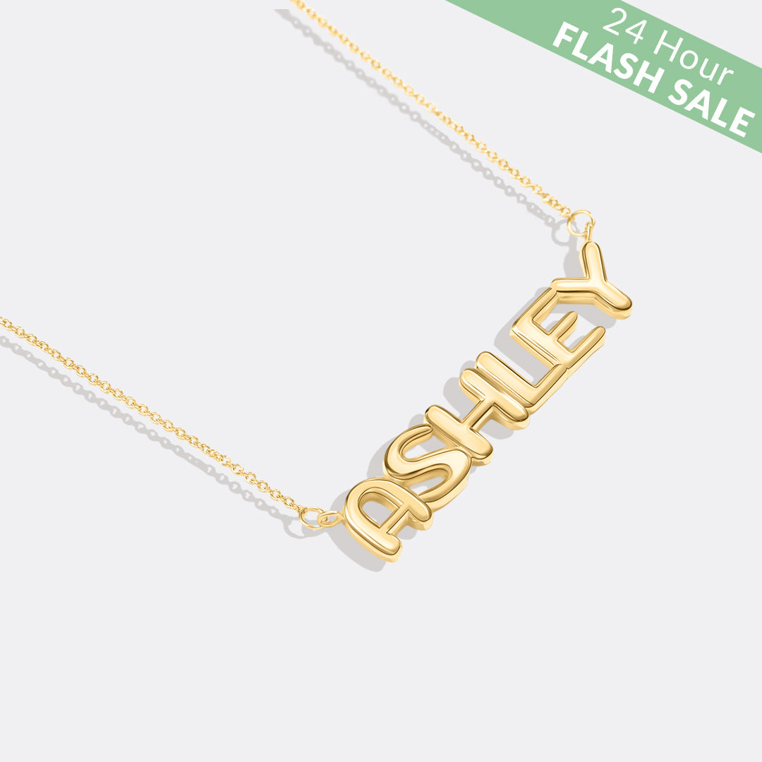 This playful piece features your name crafted in a fun, balloon letter style, adding a whimsical touch to your jewelry collection.