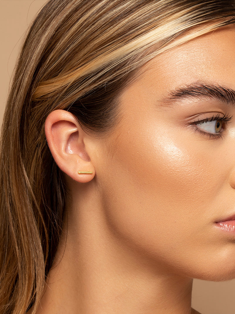 Our Bar Stud Earrings are your next everyday staple. These gold bar earrings work perfectly into your earring stack, or make a minimalist statement on their own. In our opinion, there’s nothing better than a simple stud earring.