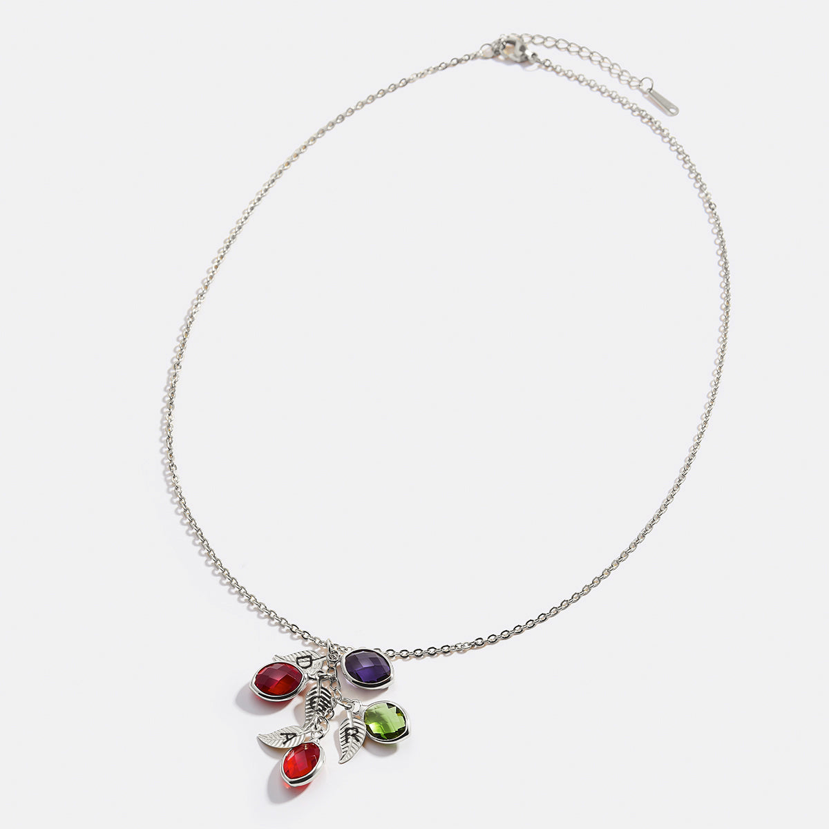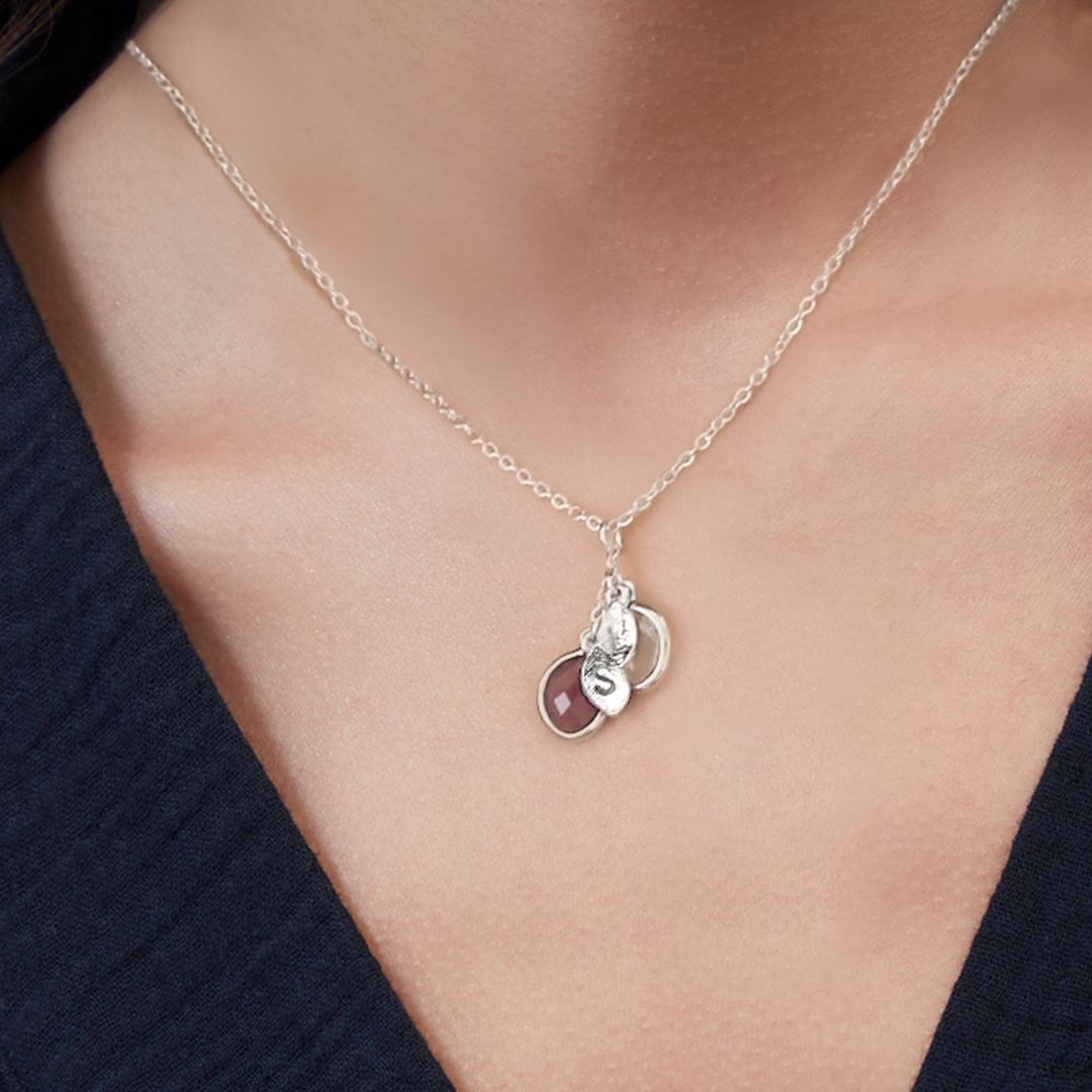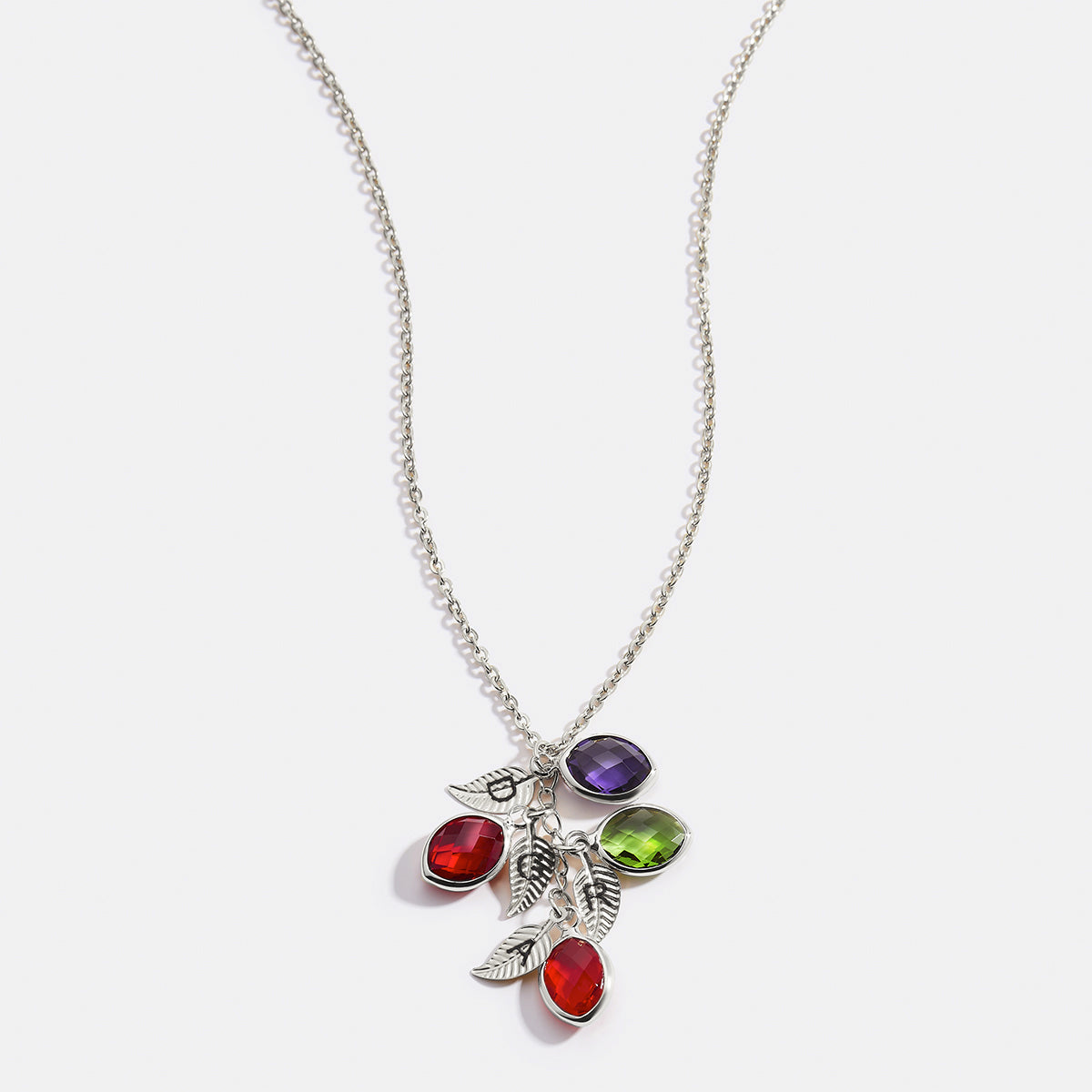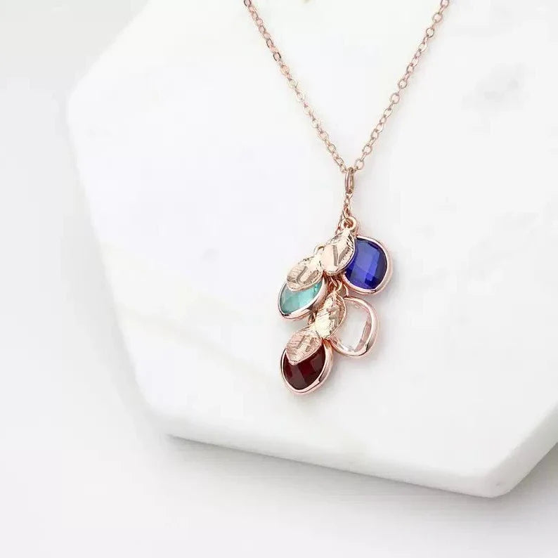 Cherish your loved ones with the Family Birthstone Cluster Necklace. This beautifully crafted piece can be customized with up to five birthstone charms, each accompanied by a matching leaf that can be optionally engraved with an initial. Perfect for keeping your family close to your heart, this necklace makes a touching and personalized gift for any occasion.