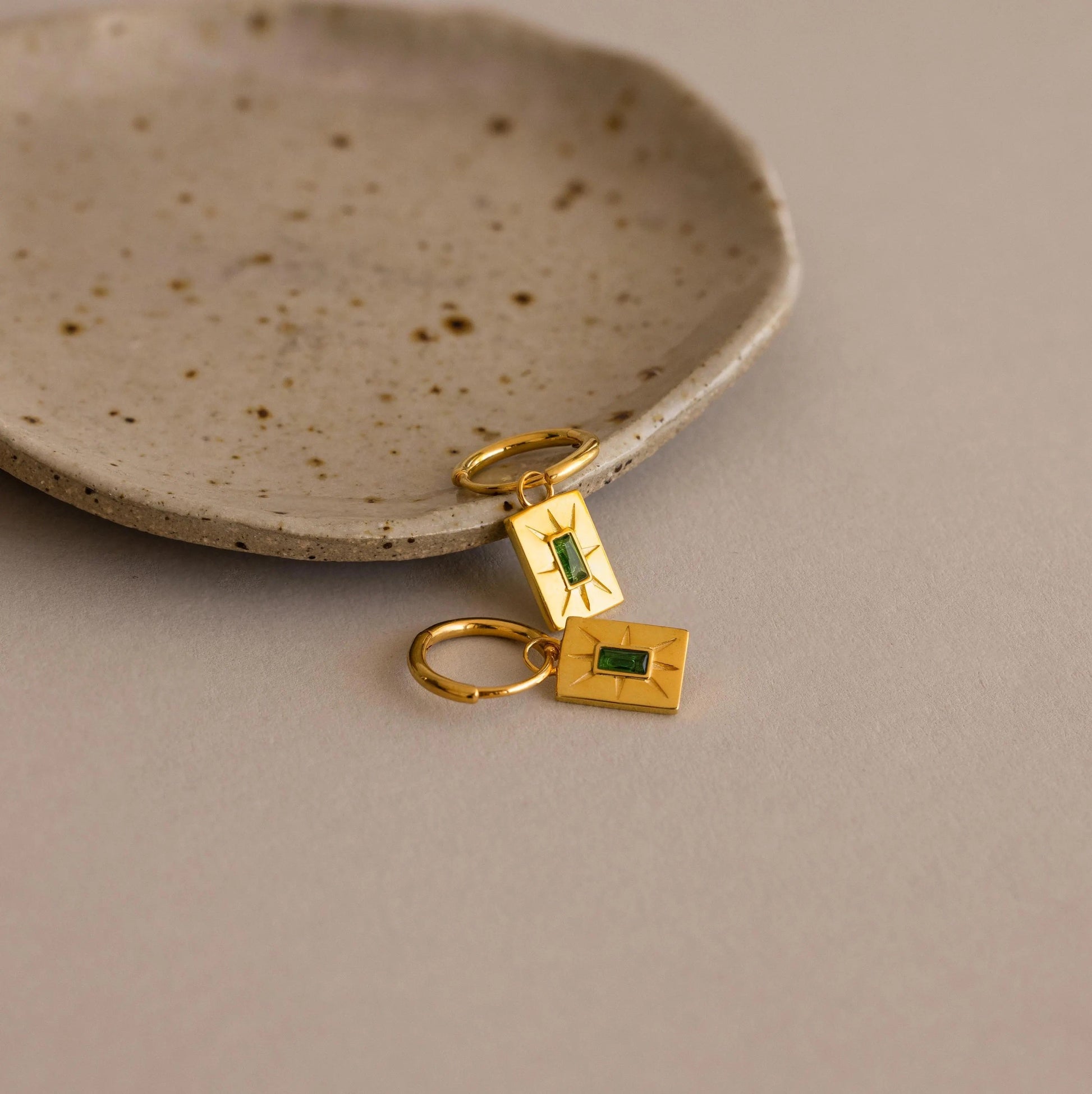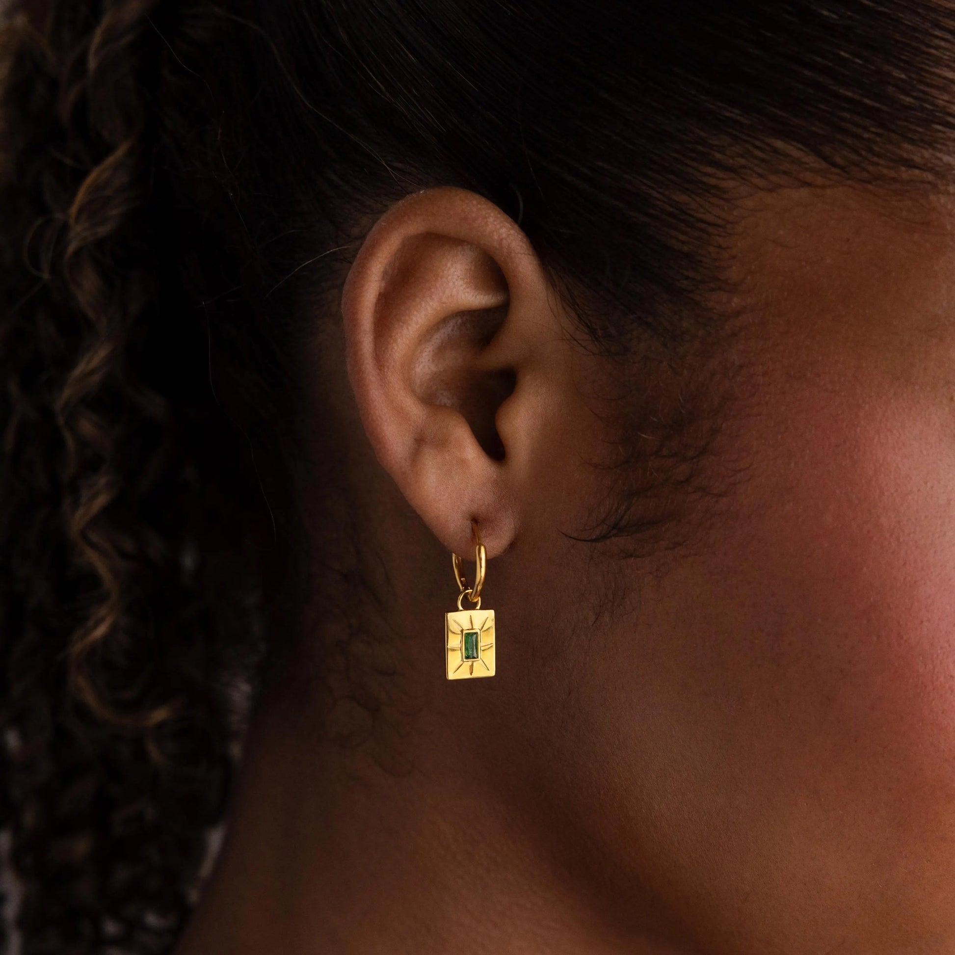 Little hoops, big meaning. Our Birthstone Tag Huggies feature dainty huggie hoops with a sleek rectangular tag charm, each one centered with a baguette-cut birthstone of your choice. A blend of modern elegance and personal touch, these earrings are a little reminder of what matters most. Whether it’s your birth month, a special someone, or just a stone that speaks to you.