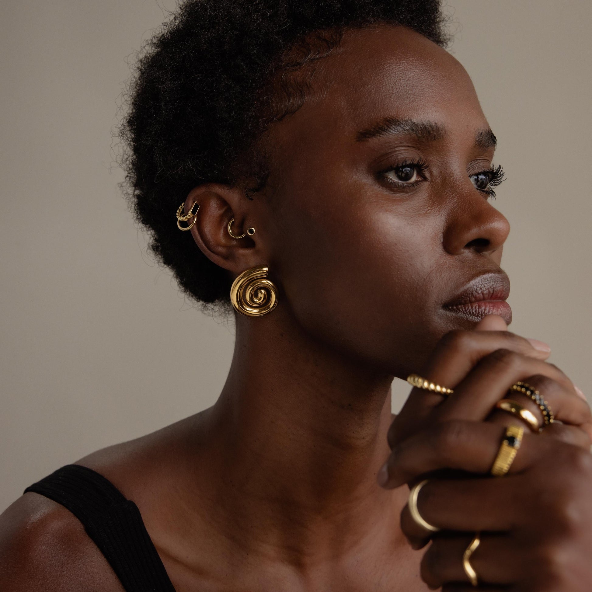 Our Bold Spiral Stud Earrings bring a bold, sculptural touch with their sleek, geometric swirl design. A statement piece in gold or silver finish, they add effortless sophistication and modern elegance to any look ✨