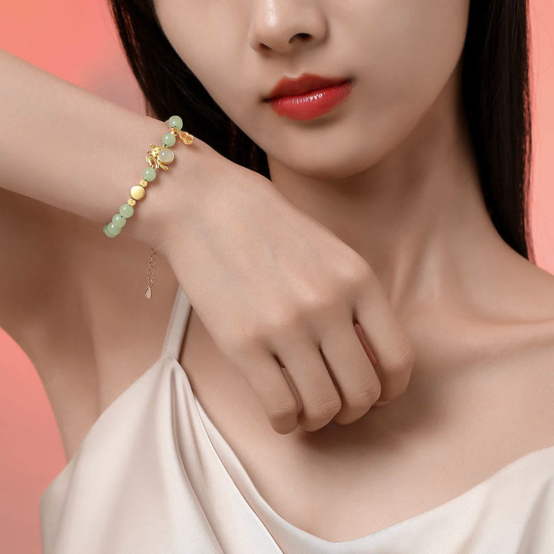 Hetian Jade has always been synonymous with the best nephrite. The hetian jade is popularly used to realize wishes and dreams. It gives the owner the power to strengthen their wishes. The wearer of the hetian jade bracelet attracts positivity and wellness throughout their lives.