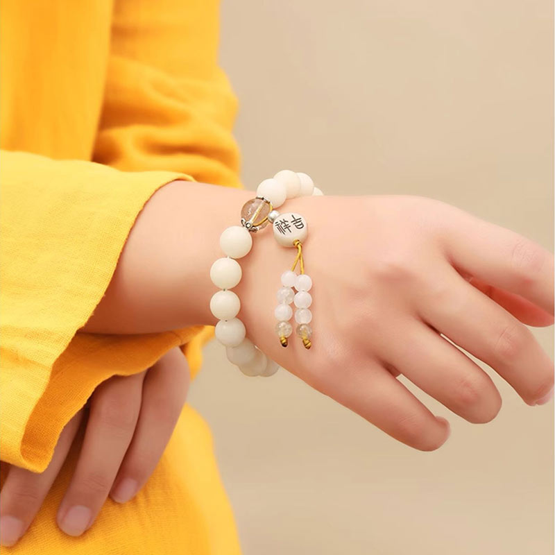 Buddha Stones Bodhi Seed Red Agate Black Obsidian Pink Crystal Rutilated Quartz Peace Wrist Mala Bracelet