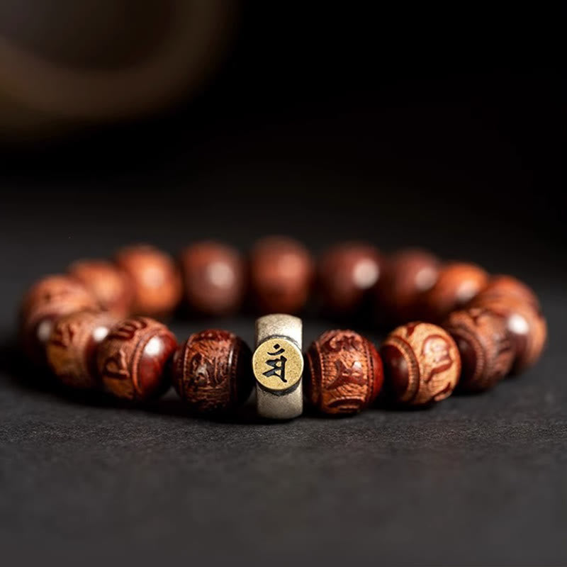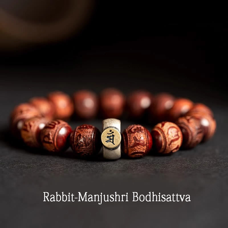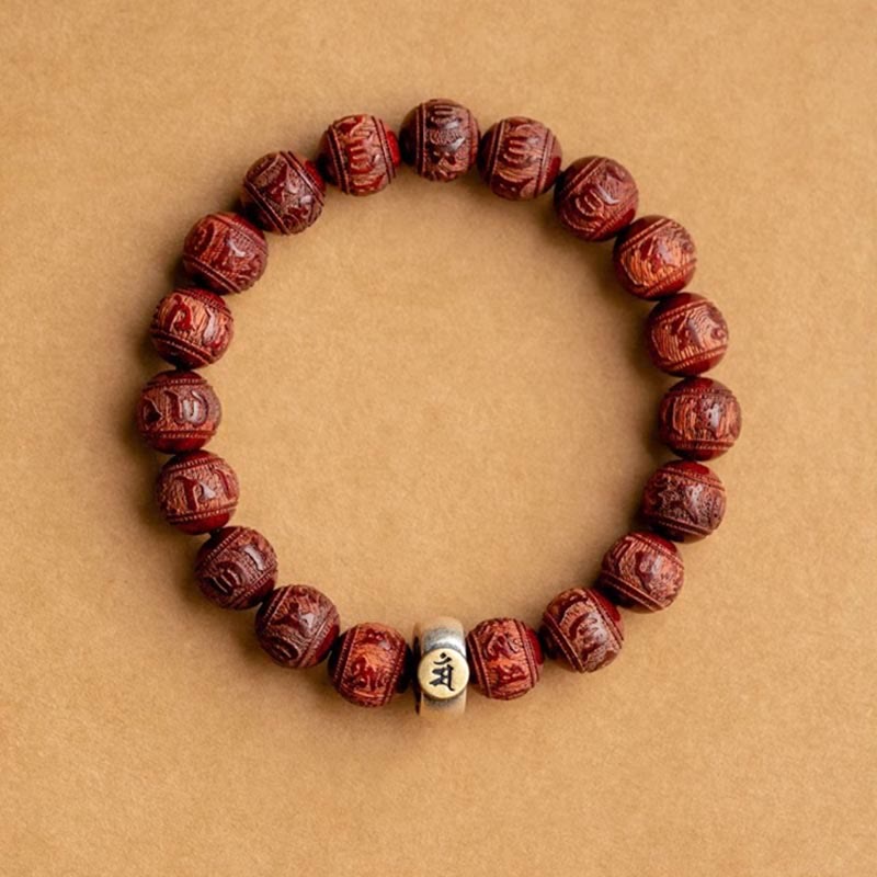 Buddha Stones Chinese Zodiac Natal Buddha Small Leaf Red Sandalwood Om Mani Padme Hum Protection Bracelet