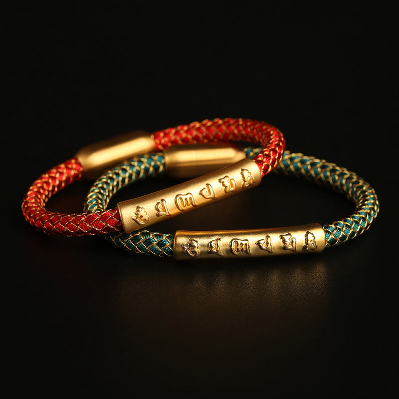 Buddha Stones Handmade 999 Sterling Silver Om Mani Padme Hum Protection Dragon Scale Braided Magnetic Buckle Bracelet