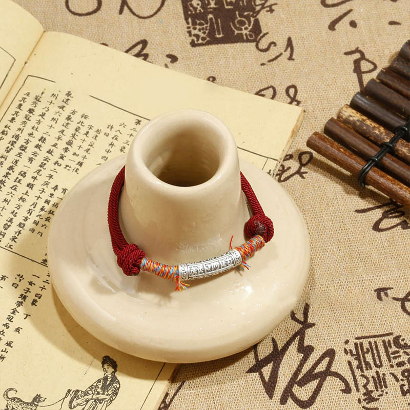 Buddha Stones Handmade 999 Sterling Silver Om Mani Padme Hum Protection Rope Bracelet