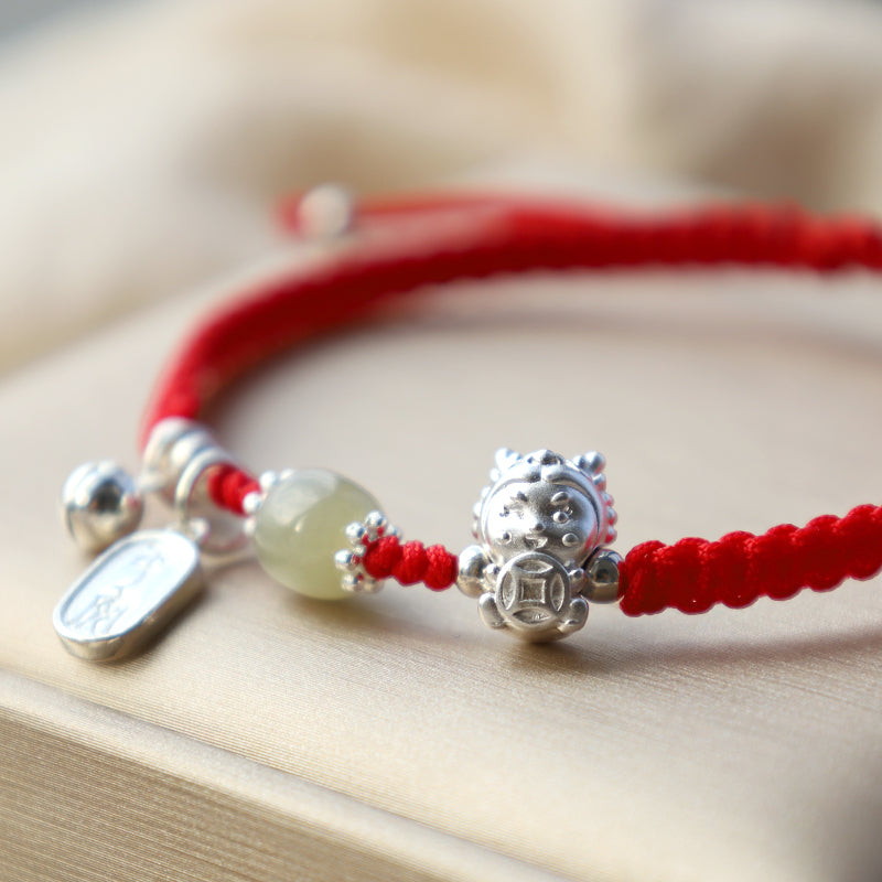 Buddha Stones Handmade Year Of The Dragon 999 Sterling Silver Hetian Jade Copper Coin Peace And Joy Protection Bracelet