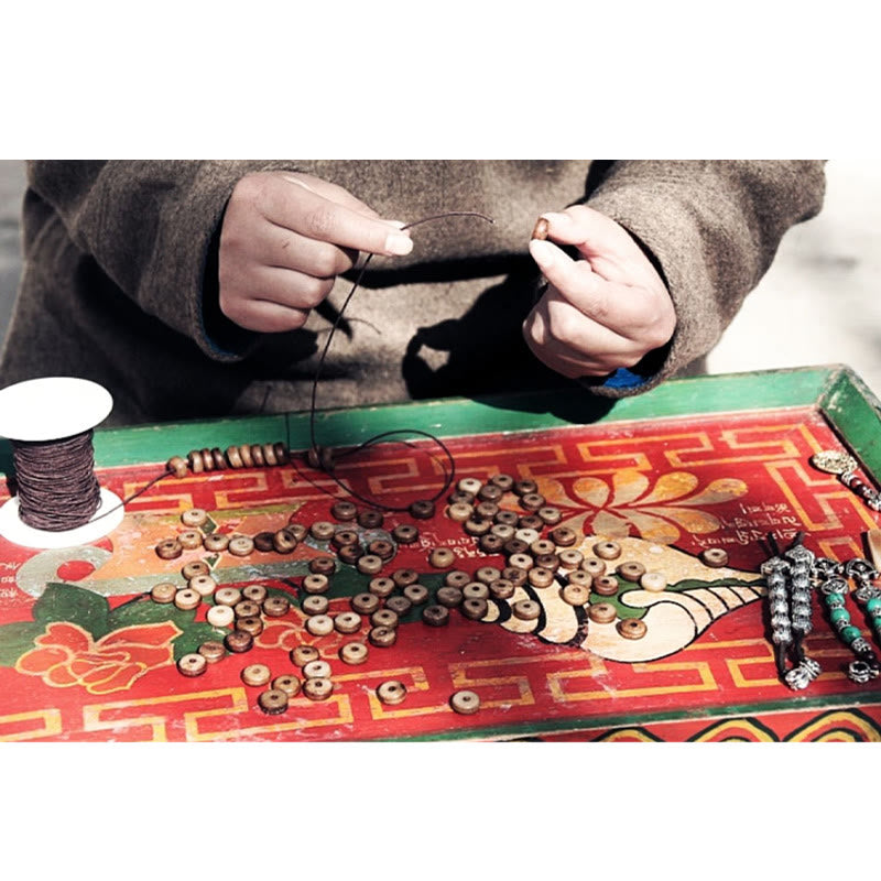 - Material: Yak Bone, Dzi Bead, Agate, Tibetan Silver Pagoda, Sandalwood, Coconut Shell, Tibetan Silver Prayer Wheels, Tibetan Silver Dharma Wheel, Tibetan Silver Nine Palaces Eight Diagrams, Brass, Rope, Elastic Rope, Non-Elastic Cotton Rope