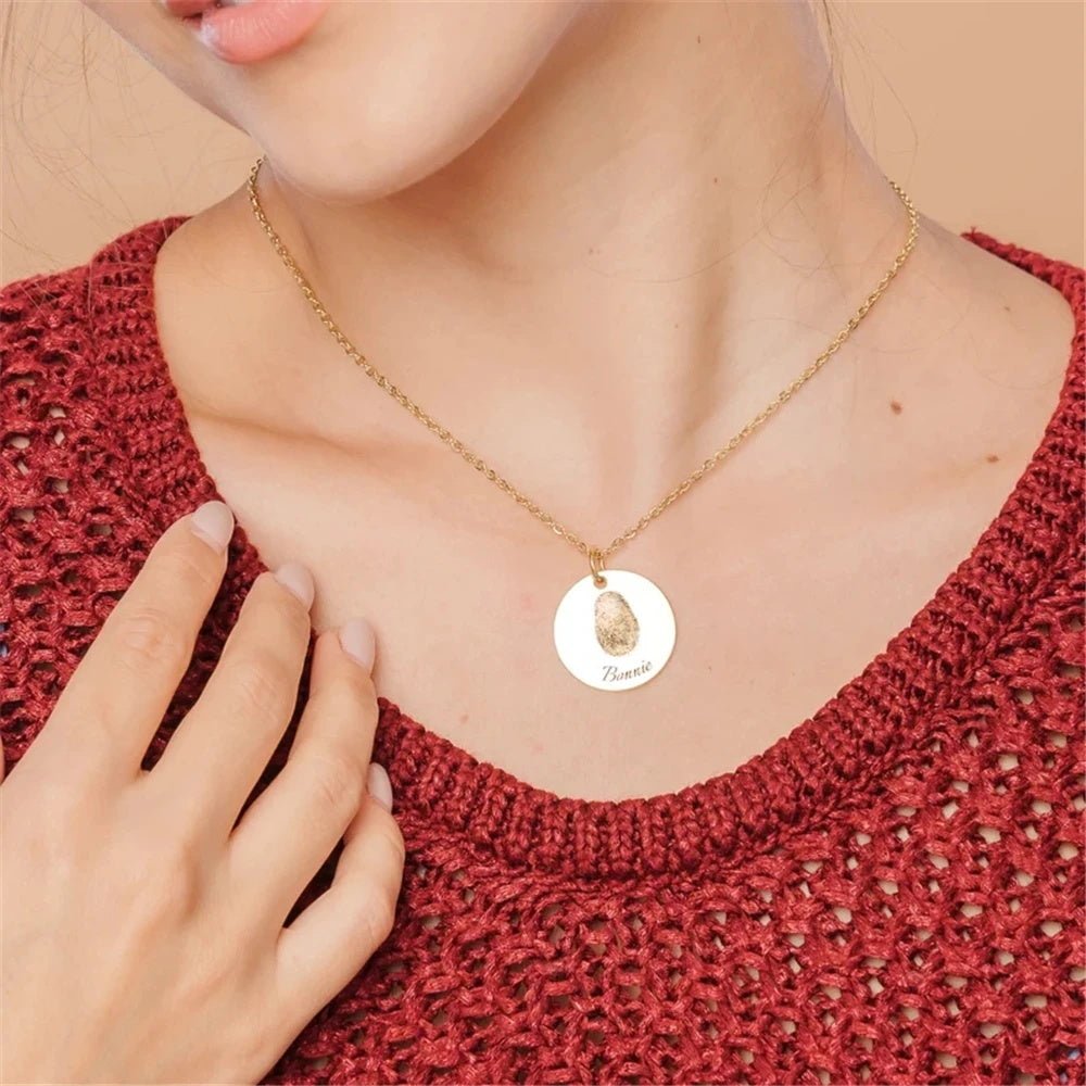 This unique necklace features a diamond-engraved charm with a single fingerprint. Along with this, we offer complimentary engraving of an initial or name to add a personal touch.