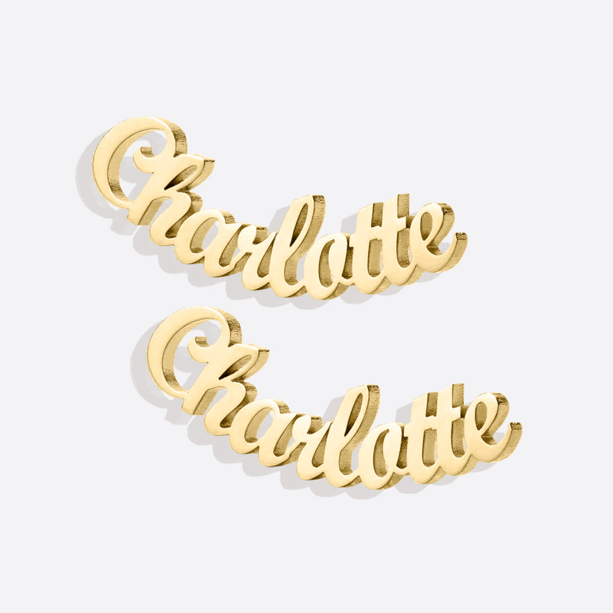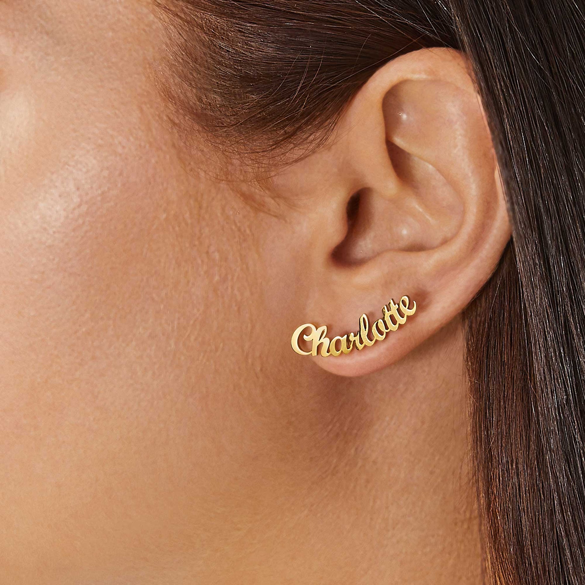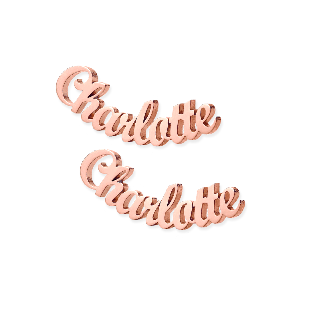 These Custom Name Earrings are the perfect way to show off your unique style. Crafted with love in 18k Gold, Rose Gold and Silver finishes, these earrings feature your name of choice in a stylish font. Hypoallergenic and comfortable to wear, these earrings make a great gift for you and your loved one.