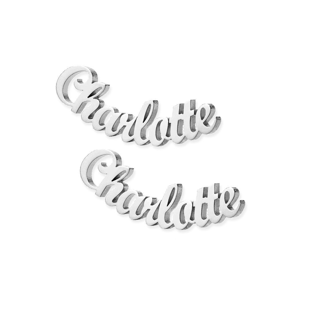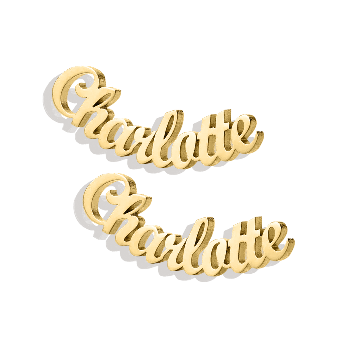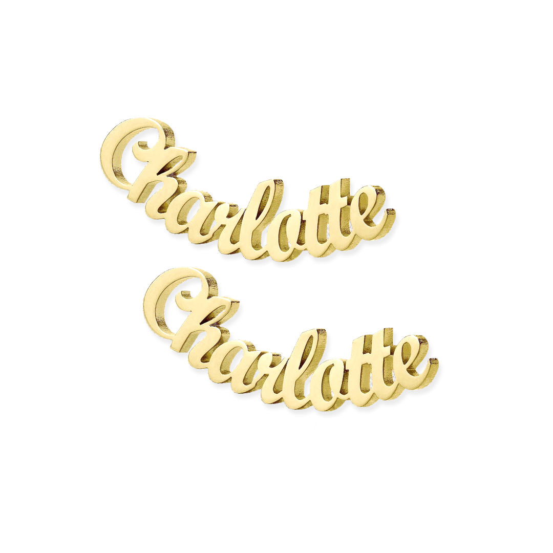 These Custom Name Earrings are the perfect way to show off your unique style. Crafted with love in 18k Gold, Rose Gold and Silver finishes, these earrings feature your name of choice in a stylish font. Hypoallergenic and comfortable to wear, these earrings make a great gift for you and your loved one.