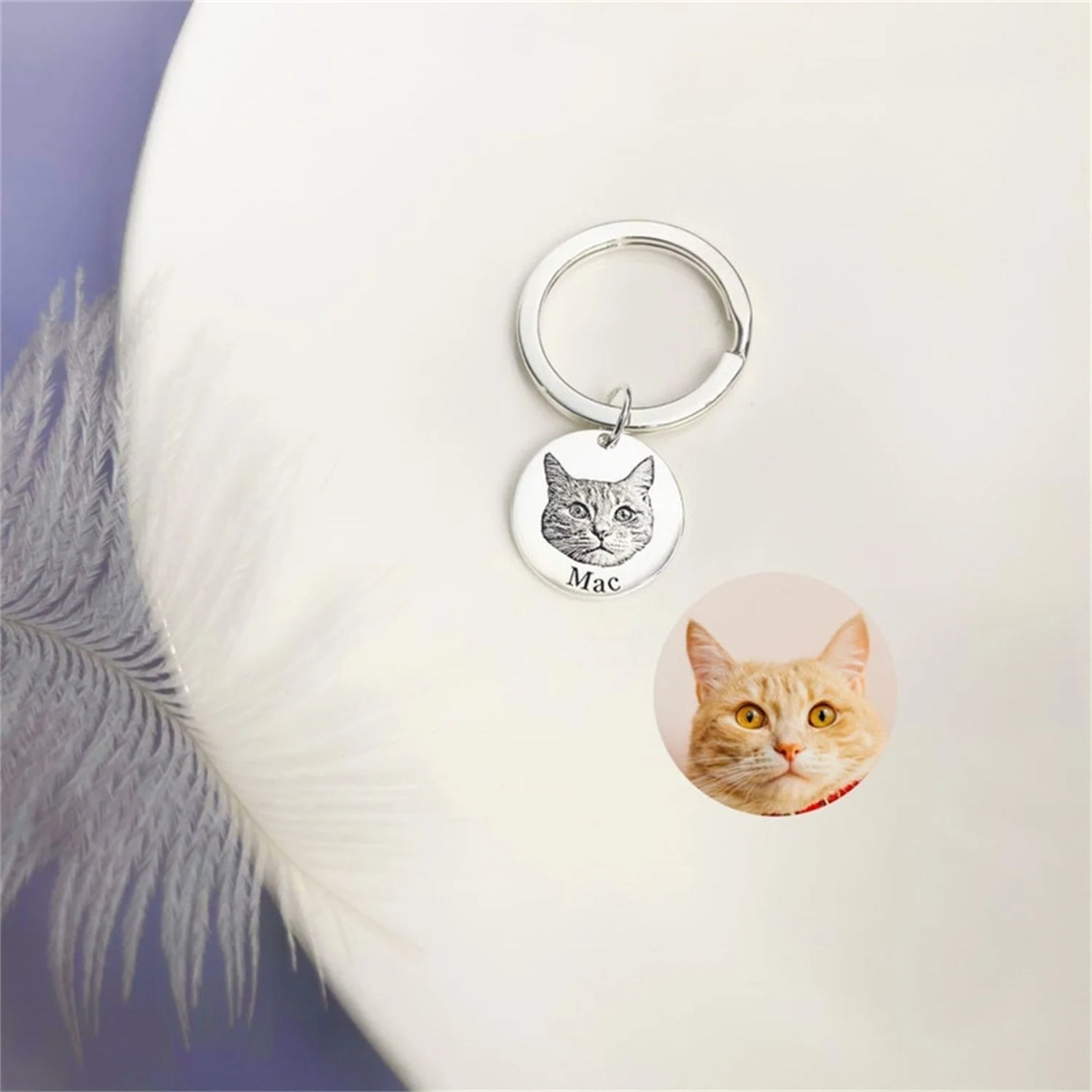"Designed with elegance and sentiment, this keychain adds a touch of style to your everyday essentials. Its polished finish and detailed craftsmanship make it a standout piece, perfect for commemorating your beloved pets in a tasteful and fashionable way."