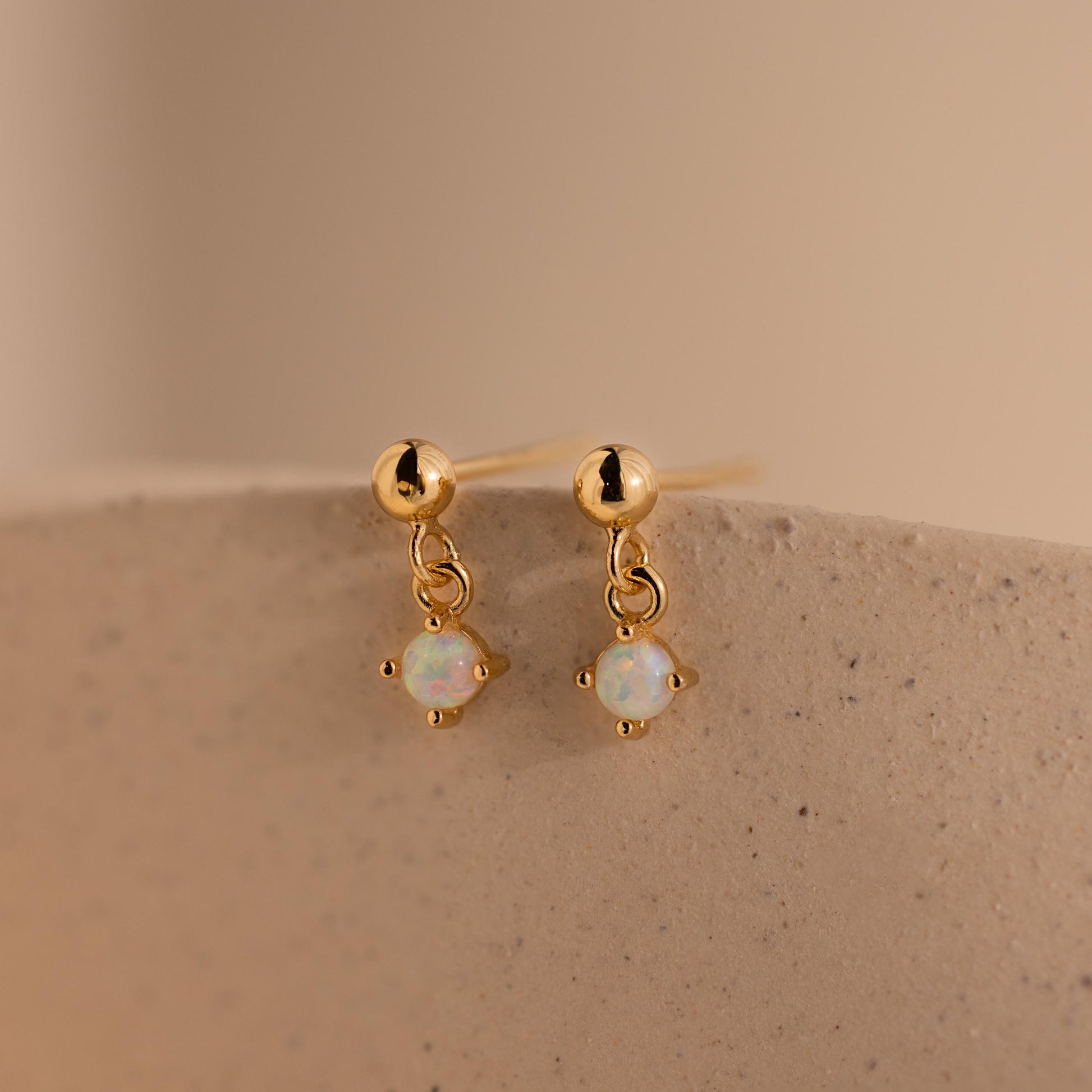 - Featuring ~3mm Opal CZ Gemstone Drop Stud Earrings | Gauge: 21