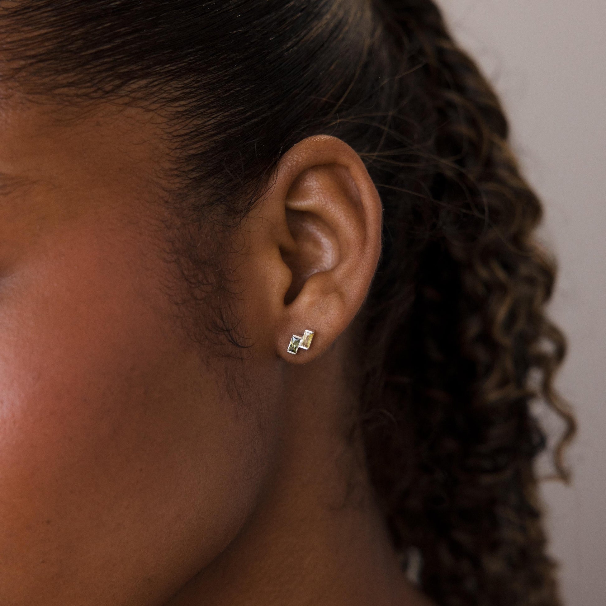 Elevate your ear stack with our Duo Baguette Birthstone Studs! These dainty yet eye-catching studs feature a sleek, staggered design with two radiant gemstones of your choice—perfect for celebrating a special bond, adding a pop of color, or personalizing your everyday look✨