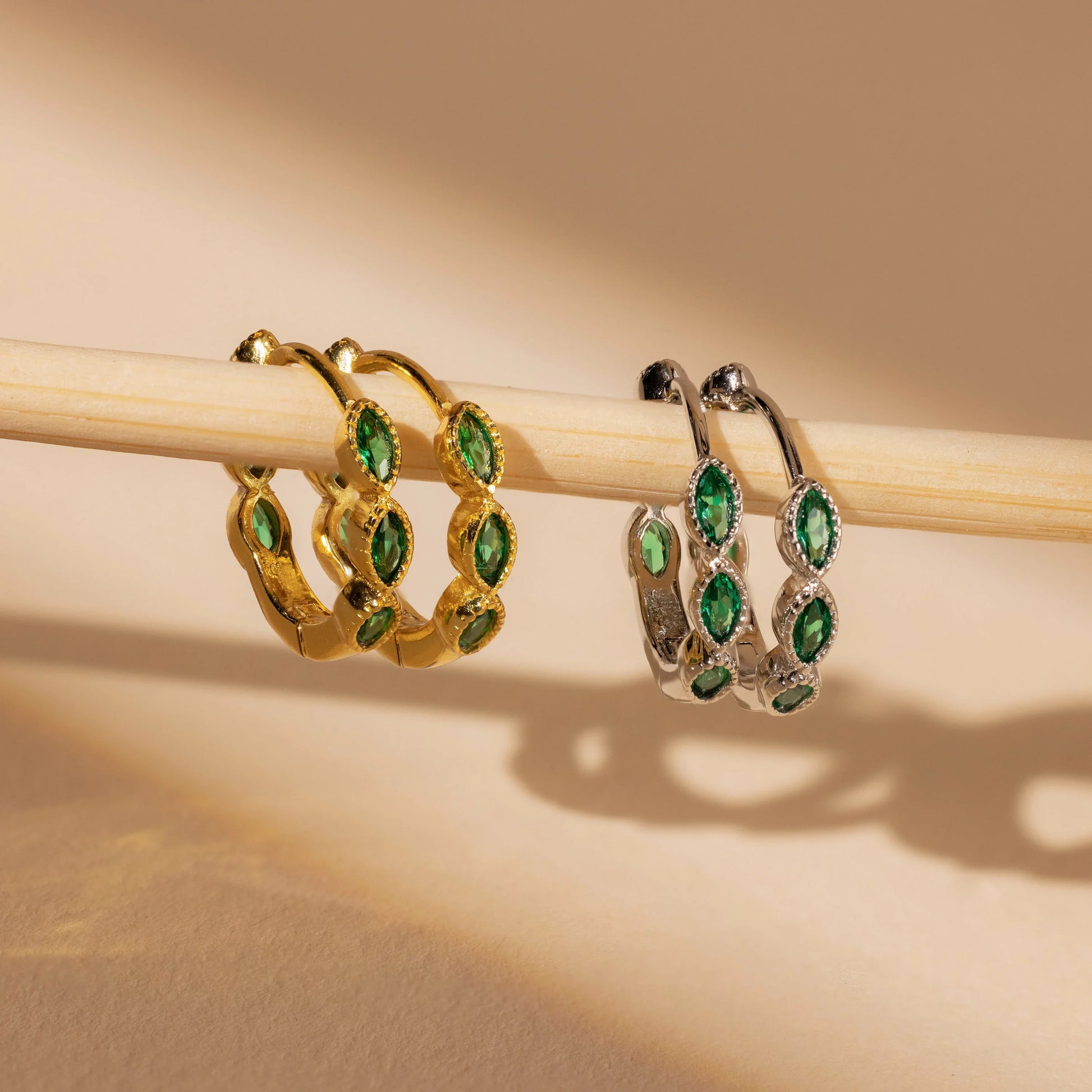 Emerald Marquise Inlay Huggies