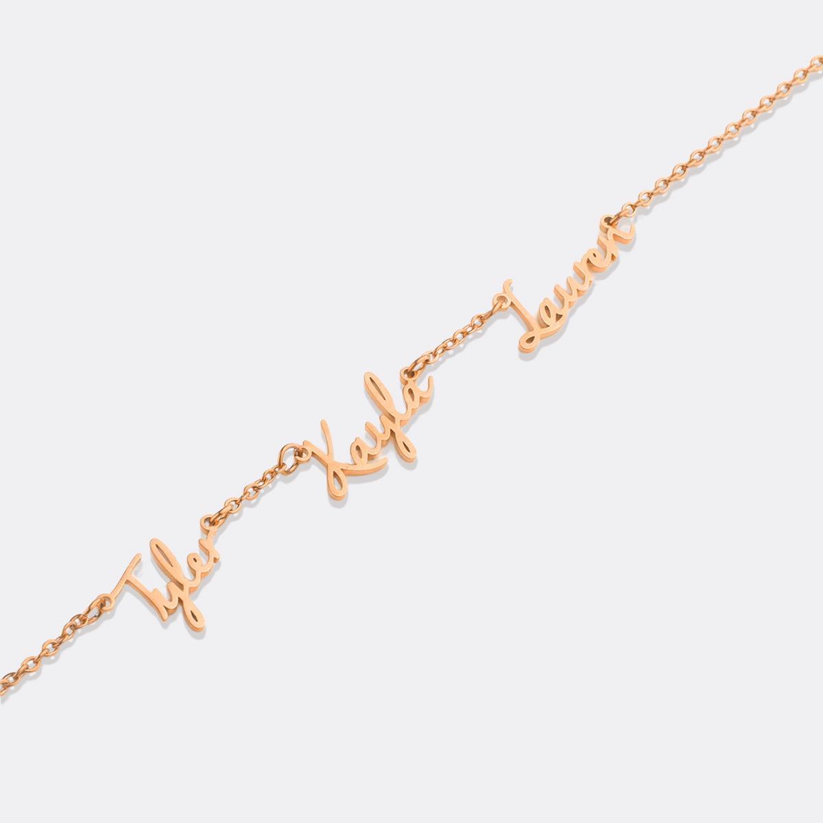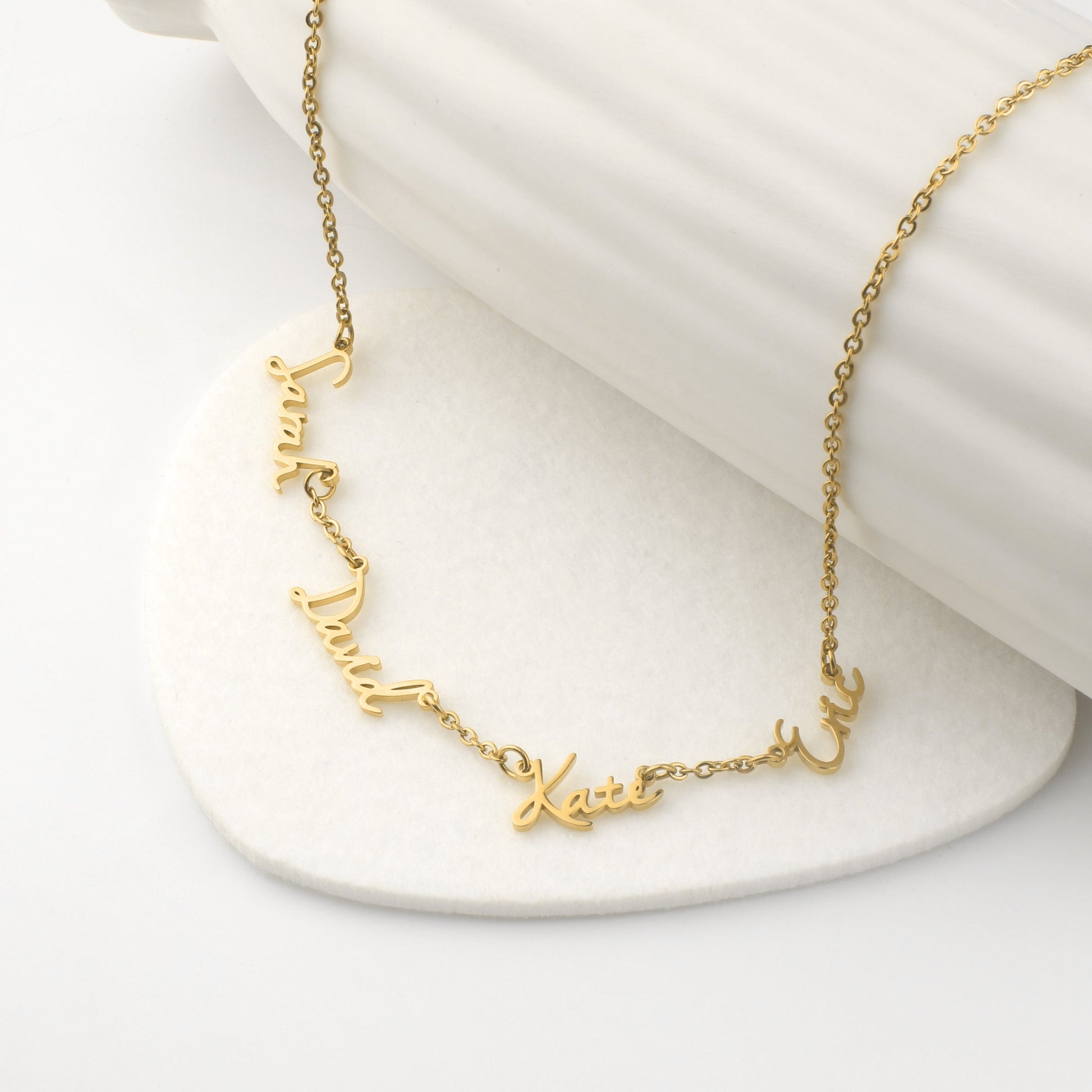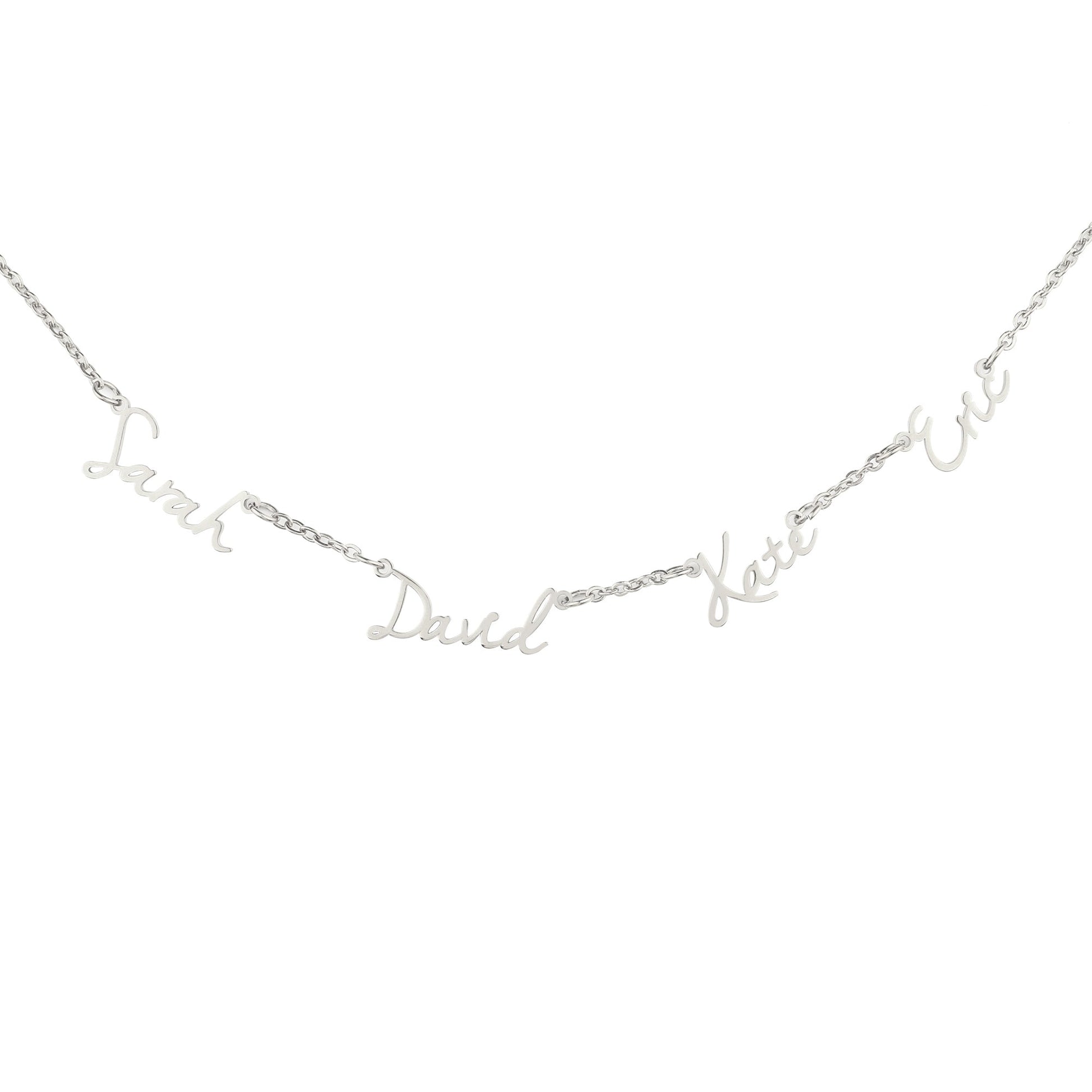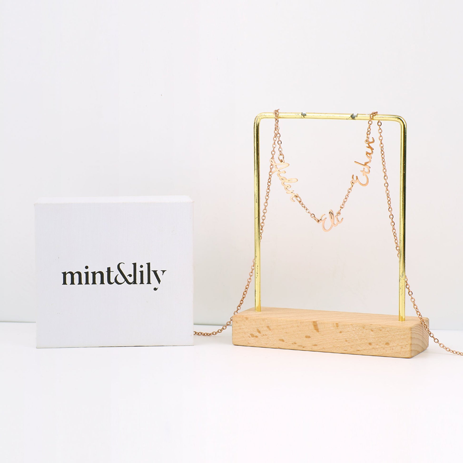 Capture the enchantment of connection with Mint & Lily's Fairy Multiple Name Necklace, where you can add up to four names in a whimsical fairy-style font. This beautifully crafted piece allows you to keep your loved ones close to your heart in a magical, stylish way.