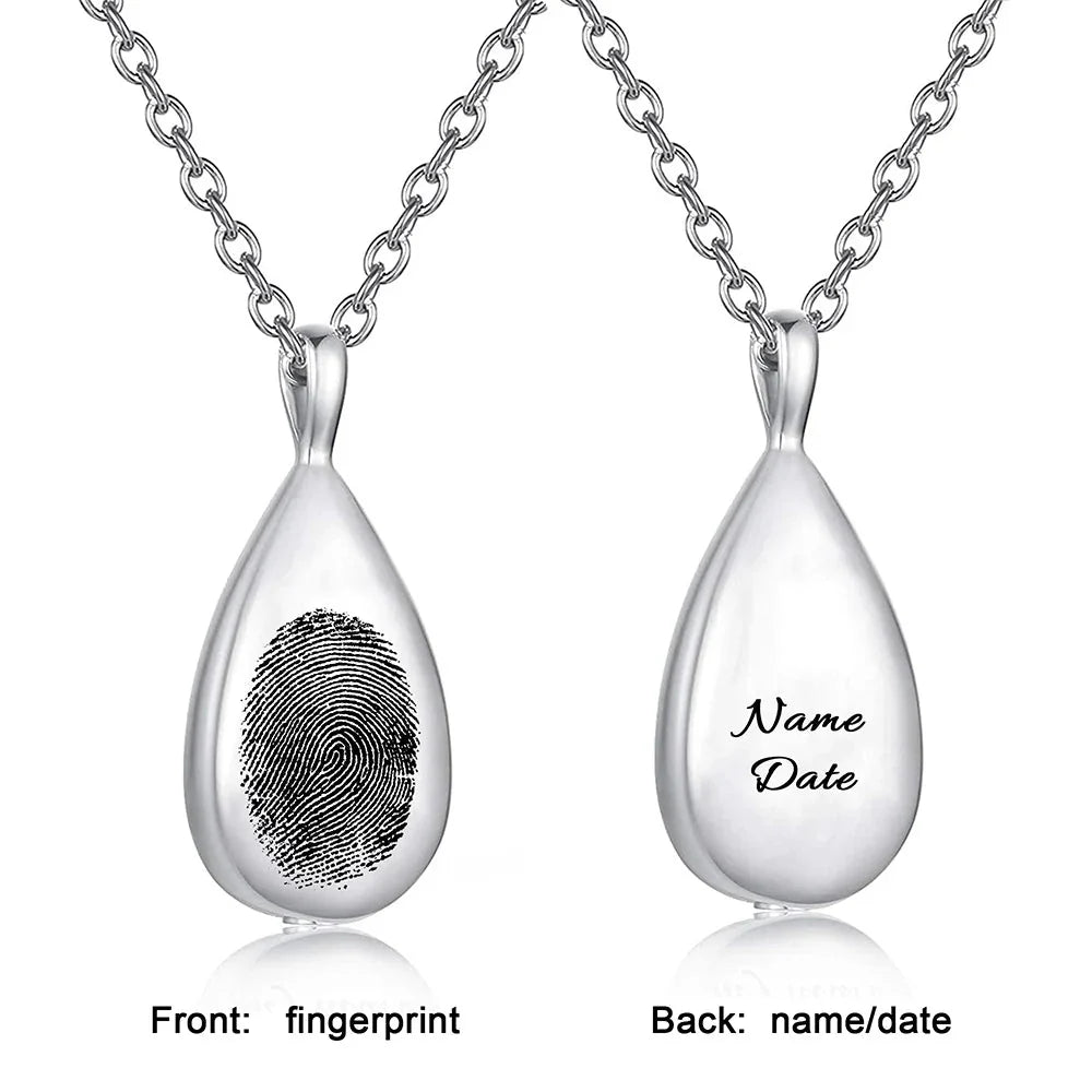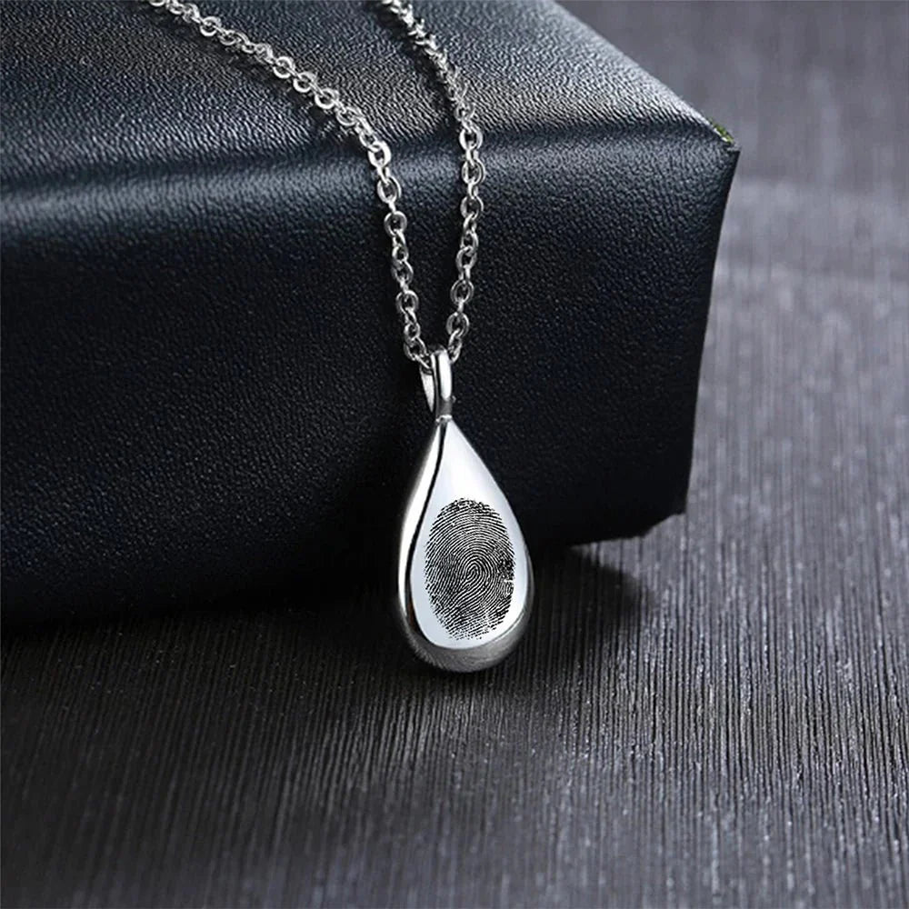 Fingerprint Teardrop Necklace with Engraving for Ashes