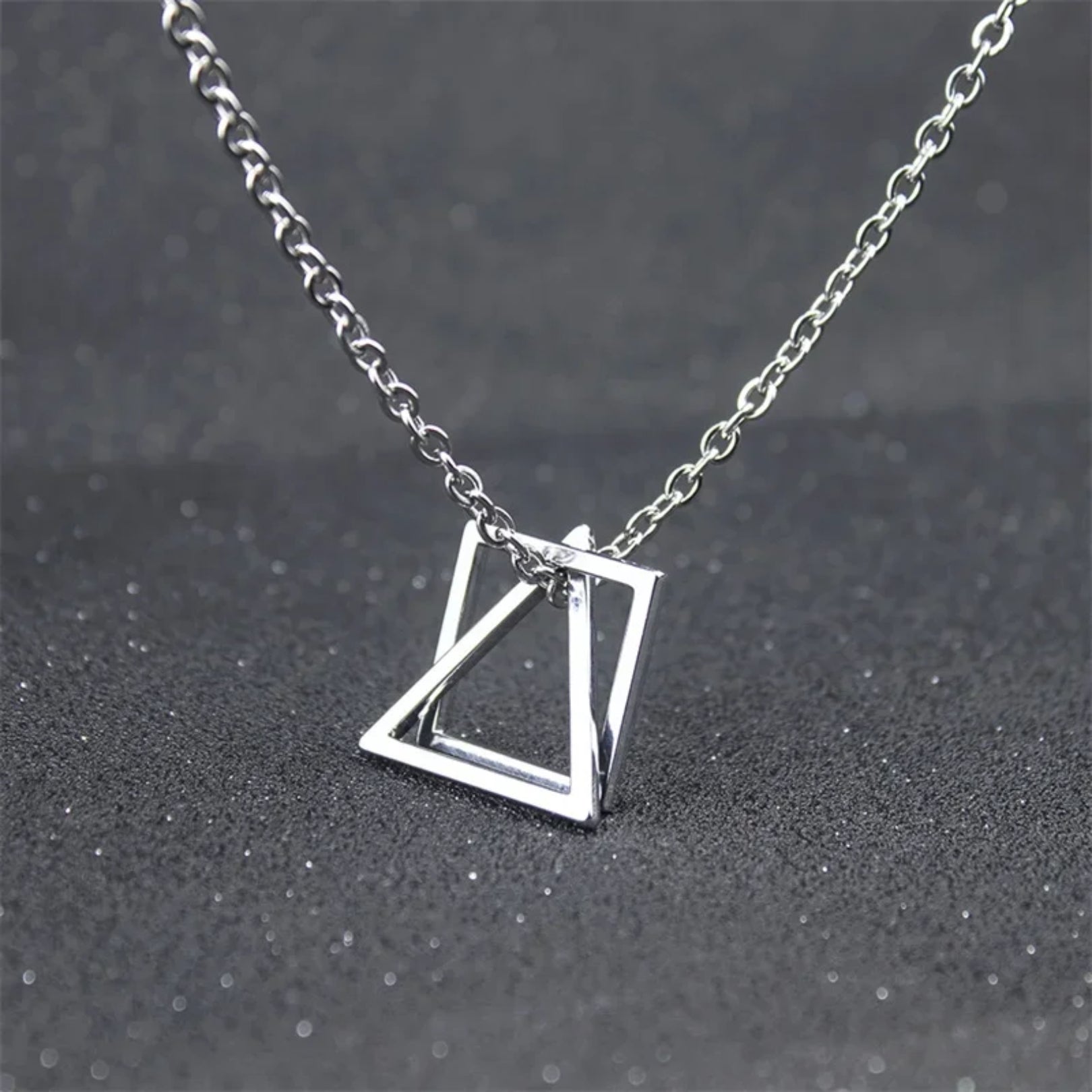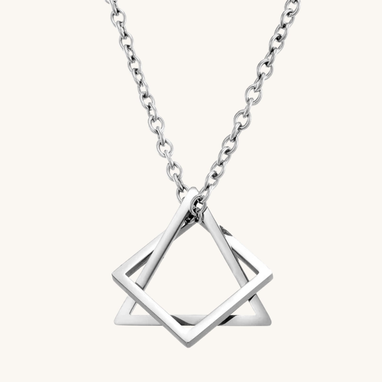 Unleash your love for modern design with the Geometric Triangle & Square Pendant Necklace. This striking piece combines clean lines and bold shapes, making it a must-have for those who appreciate the beauty of geometric artistry.