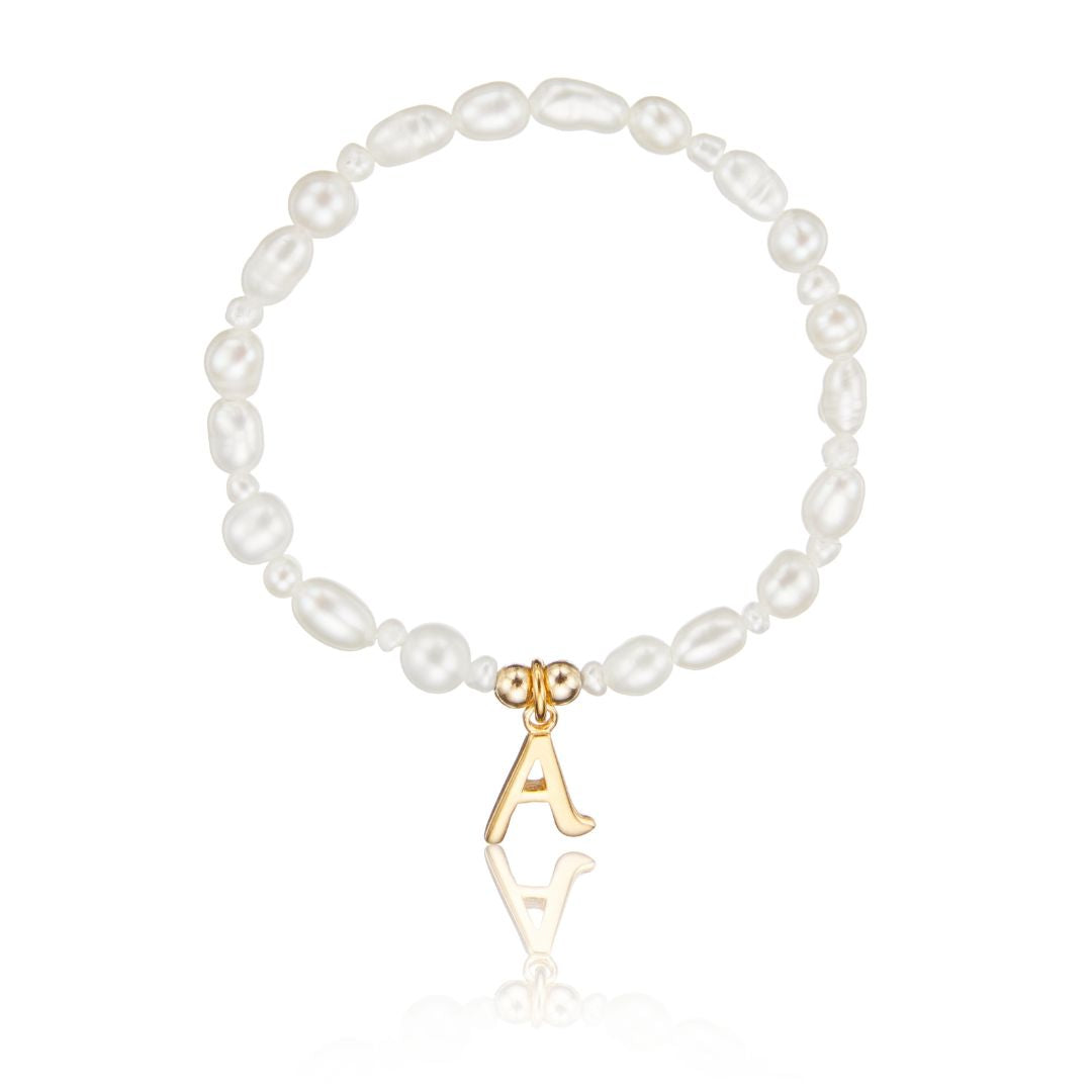 Our Gold Children's Pearl Initial Letter Bracelet is the perfect gift for special occasions. Personalise it with their initial or your own, and keep a meaningful connection close at all times. Made in our London studio, each bracelet features an assortment of freshwater pearls, making each unique and the perfect accessory for everyday wear.