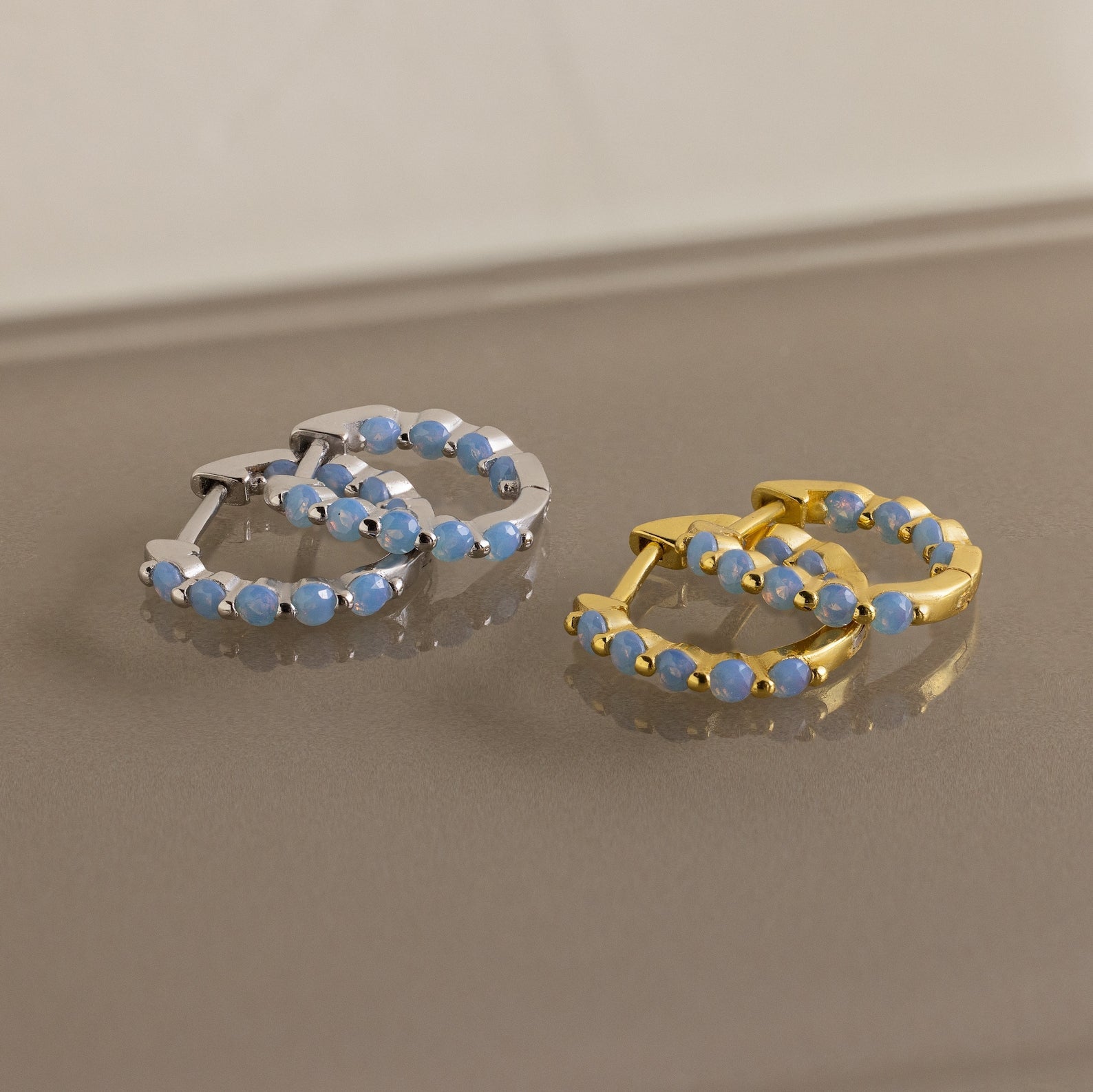 Featuring ~1.5mm Light Blue CZ Gemstone Huggie Hoops | Sold as a Pair