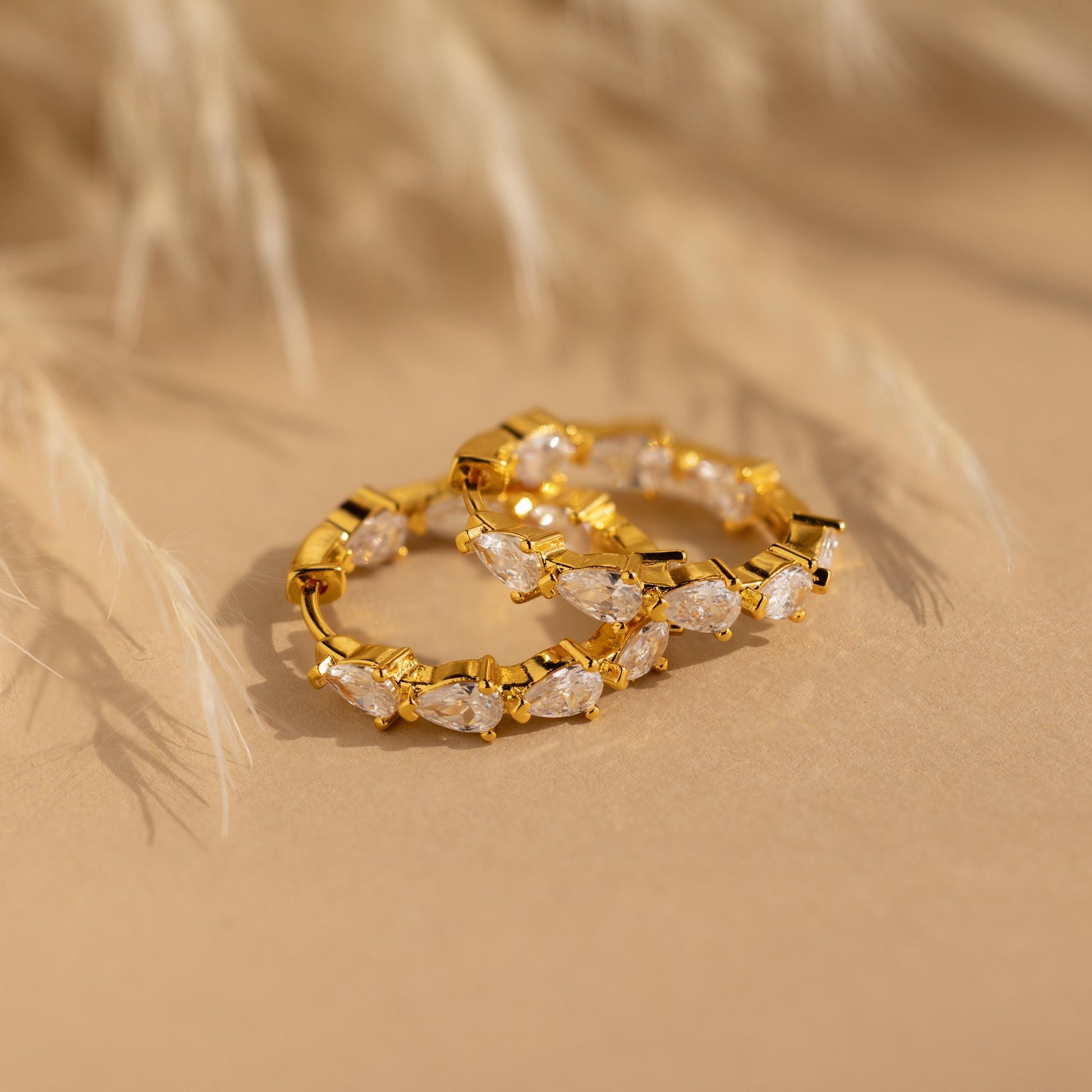 For the most important moments of your life, let our Inside Out Pear Diamond Hoops accompany you on the journey. With dazzling CZ Diamond gemstones that are uniquely pear shaped, these statement hoop earrings are the ones you'll want for those special occasions. Don't forget about the special people in your life too; give these as a gift for bridesmaids or even someone that is newly engaged so they may sparkle too ♡