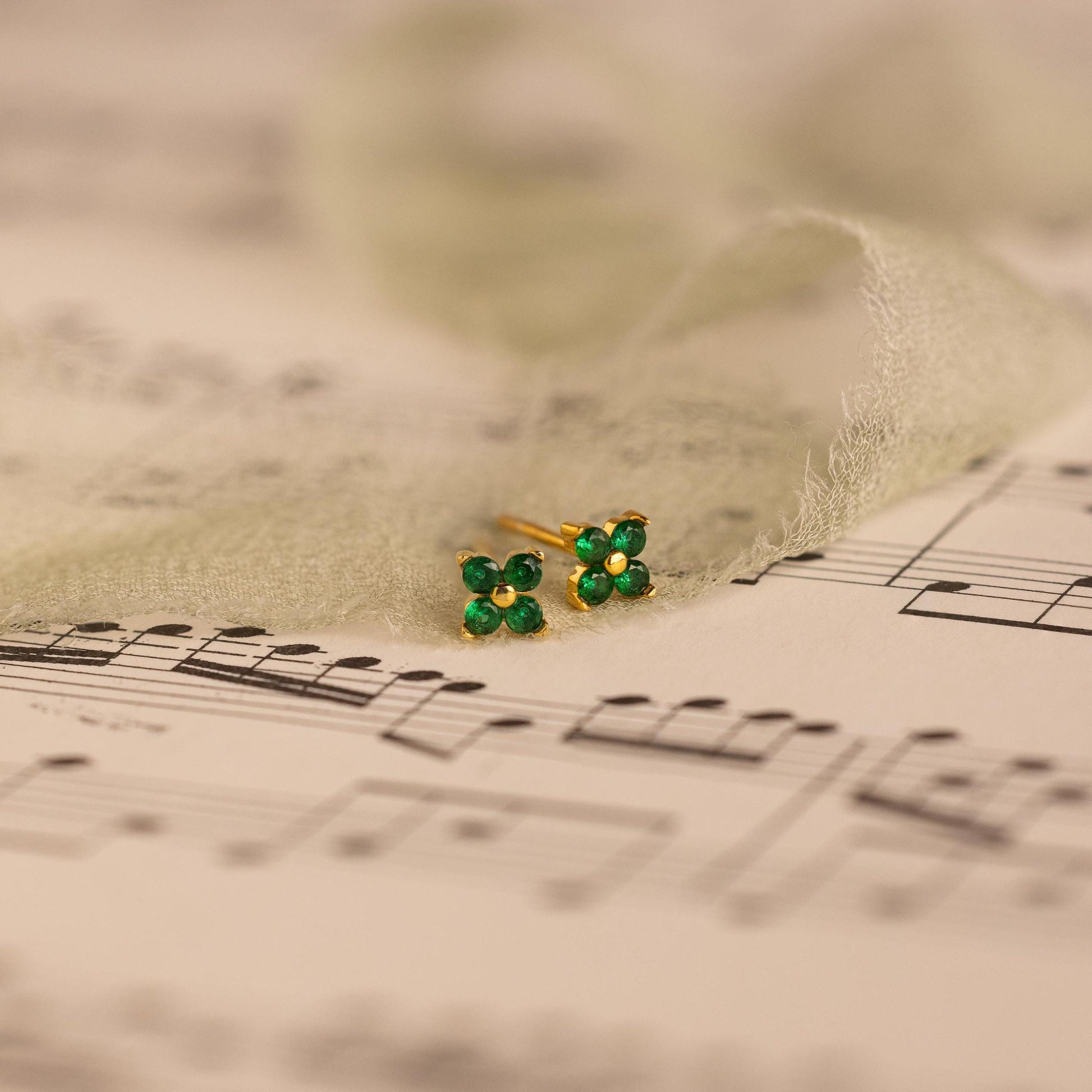 - Featuring dainty ~5mm Flower Stud Earrings with ~1.5mm CZ Gemstones | Gauge: 20