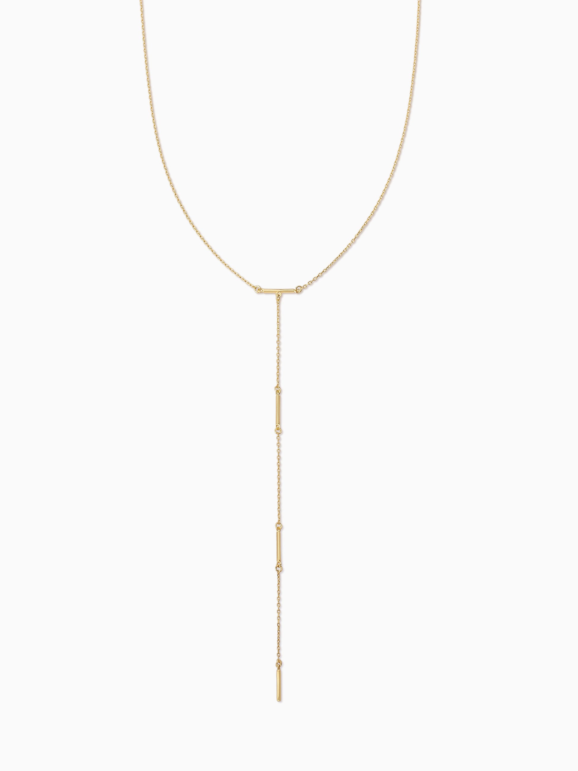 Take your necklace stack to the next level with this 18k gold over sterling silver Y-shaped necklace. Our Levels Vermeil Lariat Necklace combines gold bar details with a chain necklace to create the ultimate layering piece. For a stack you’ll want to wear every day, layer this gold lariat necklace with our Twist Chain Vermeil Necklace.