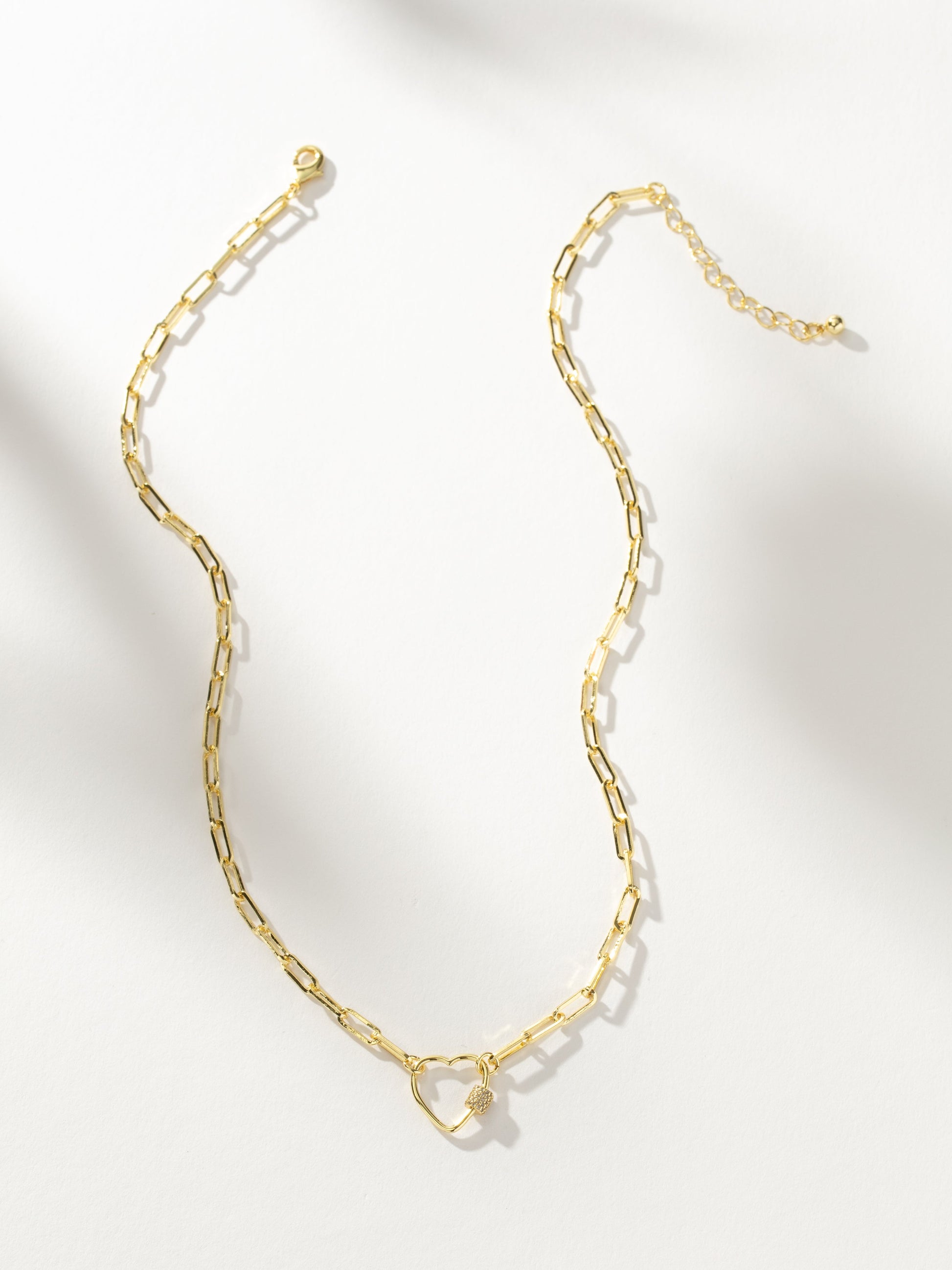 Keep your love on lock with this stunning paperclip chain and pendant necklace. Coming in gold and silver, our Locked Heart Necklace is the new staple you didn’t know you needed, until now. To recreate our go-to look, pair this chain necklace with our Radiating Heart Necklace.