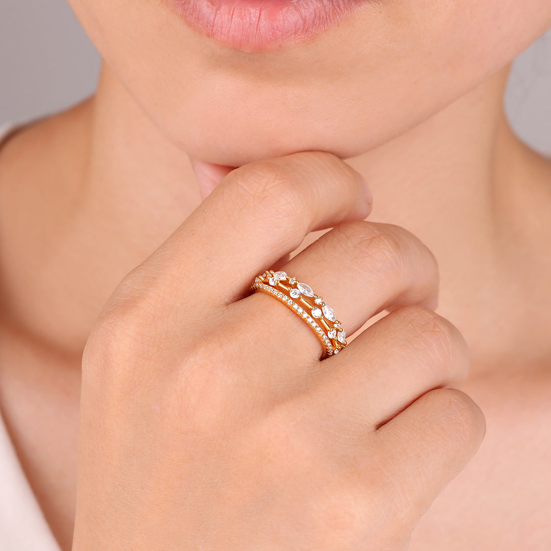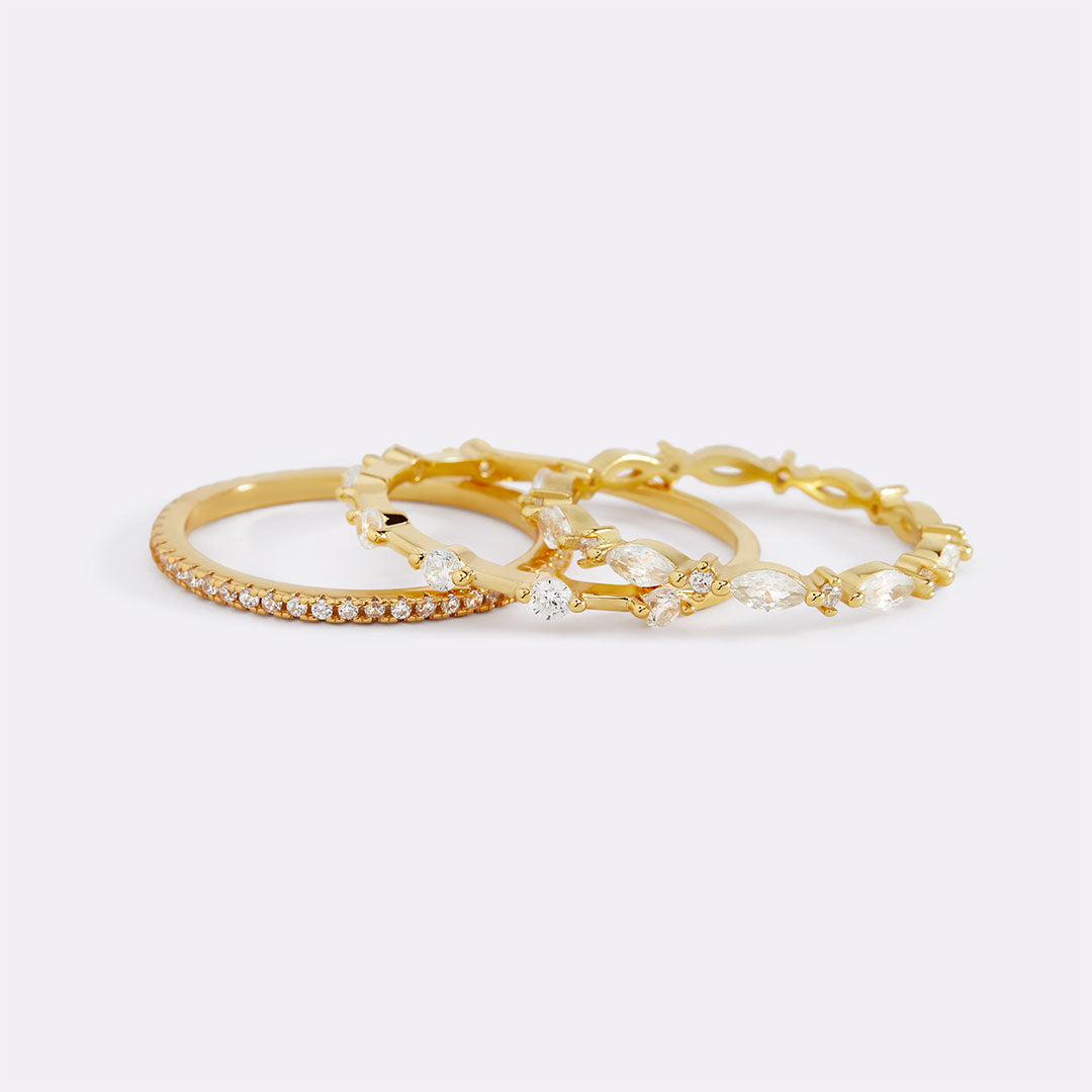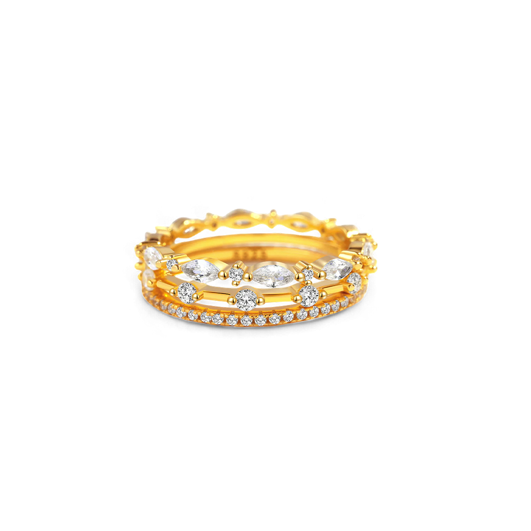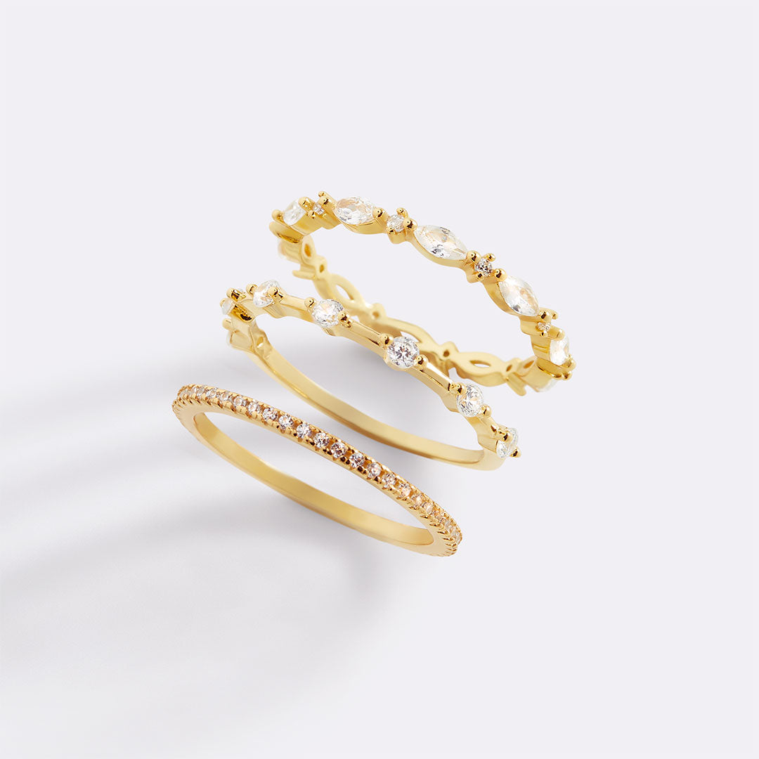The set includes multiple rings that can be stacked together or worn individually for a versatile look. Each marquis gemstone is carefully selected for its brilliance and precision-cut shape, adding a touch of sophistication and sparkle. Ideal for creating a personalized stack or mixing with other rings, this set offers endless styling options and a chic, modern flair.