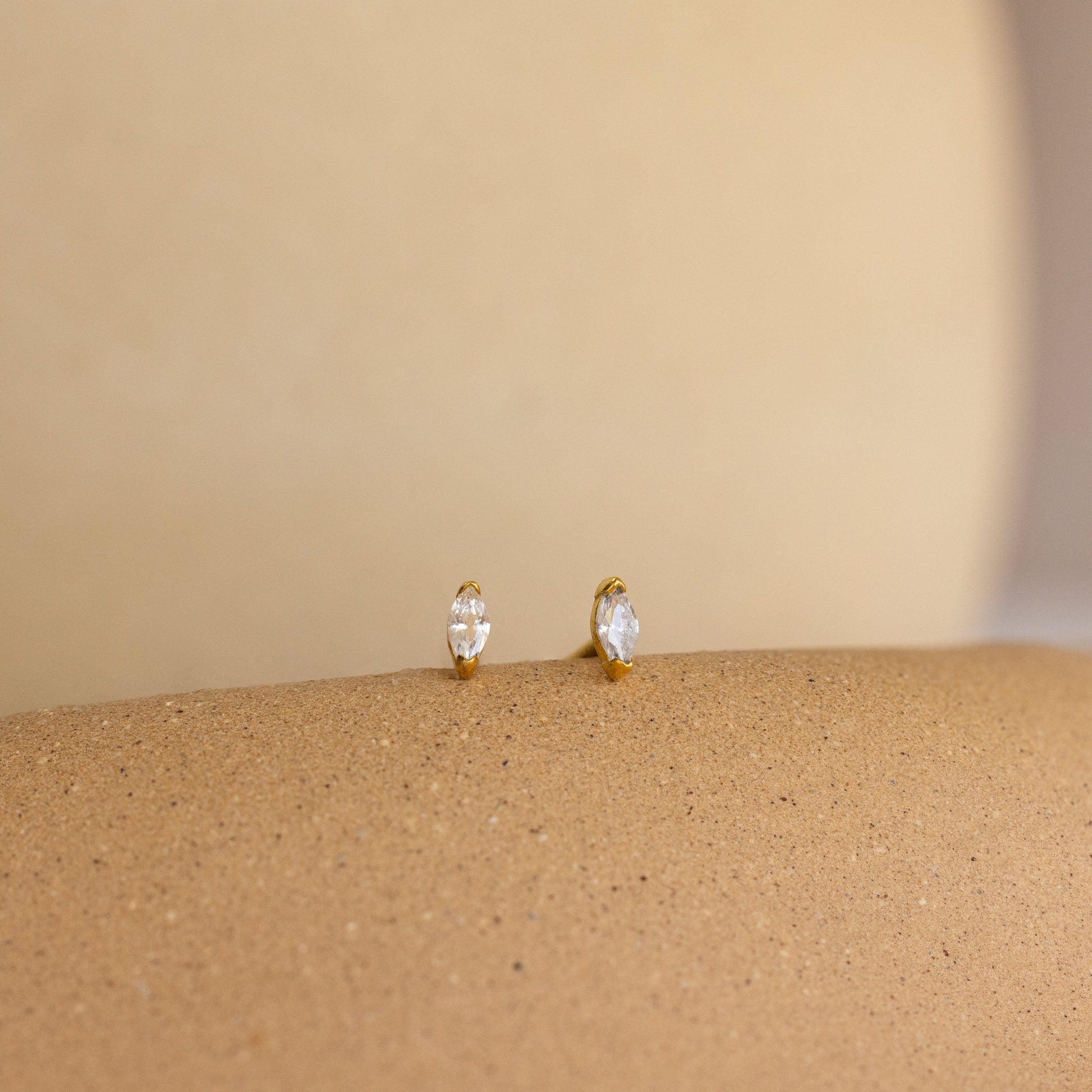 - Featuring dainty ~4.5x2mm Marquise CZ Gemstone Stud Earrings