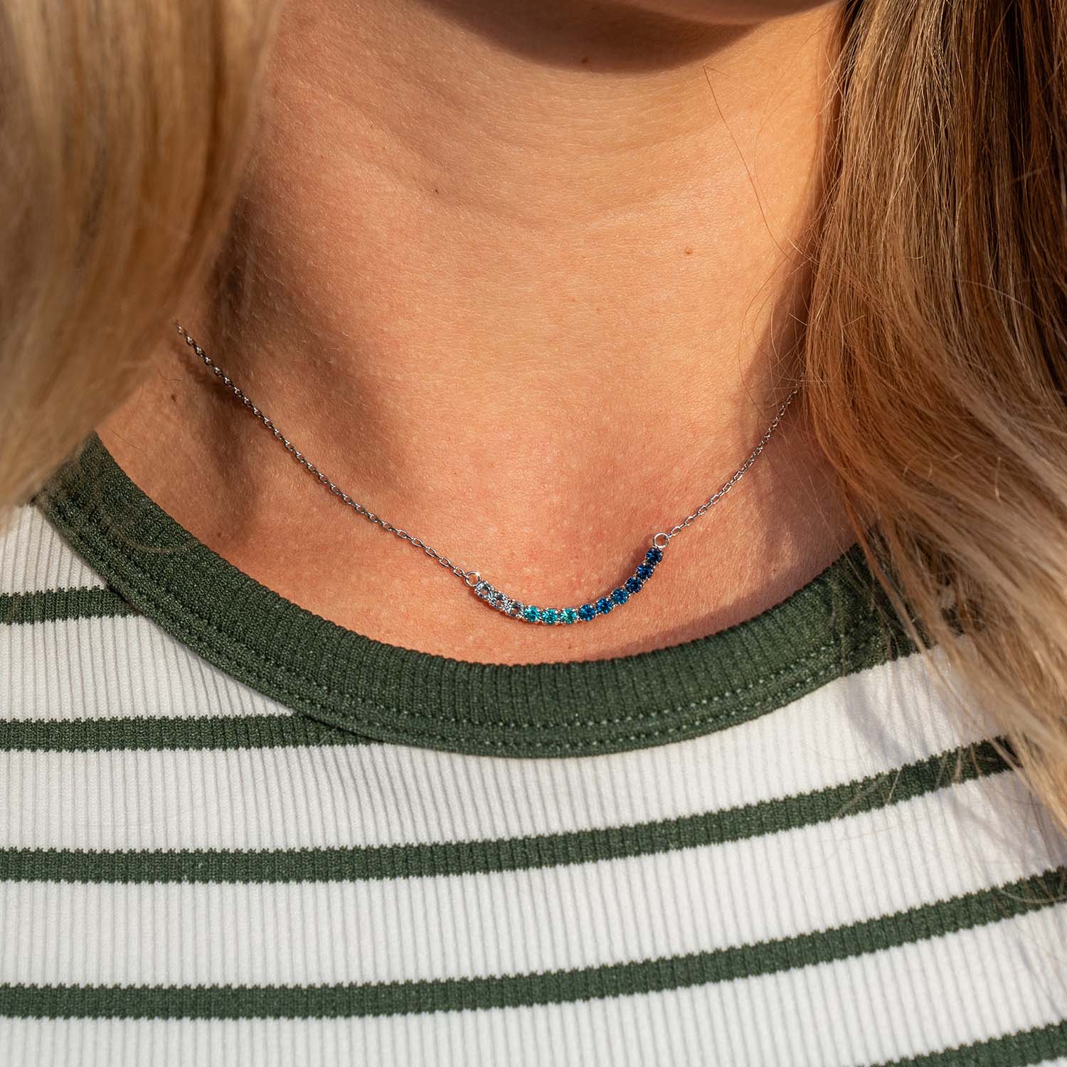 Add a touch of color and meaning to your style with our Meaningful Colors Cluster Necklace. This beautiful necklace features five color gradients, each symbolizing different virtues:
