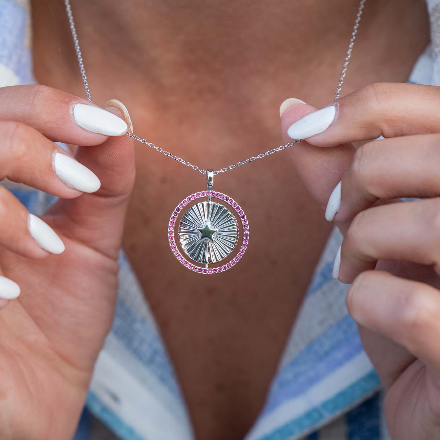 Explore the elegance and functionality of our Meaningful Colors Spin Necklace. This beautiful necklace features a spinning pendant that adds a touch of movement and fun to your style.