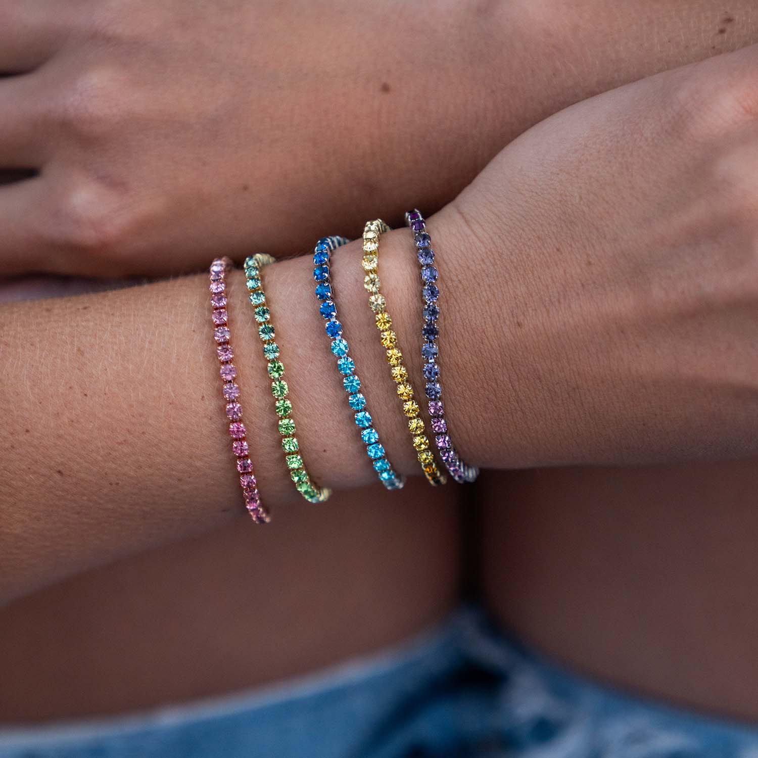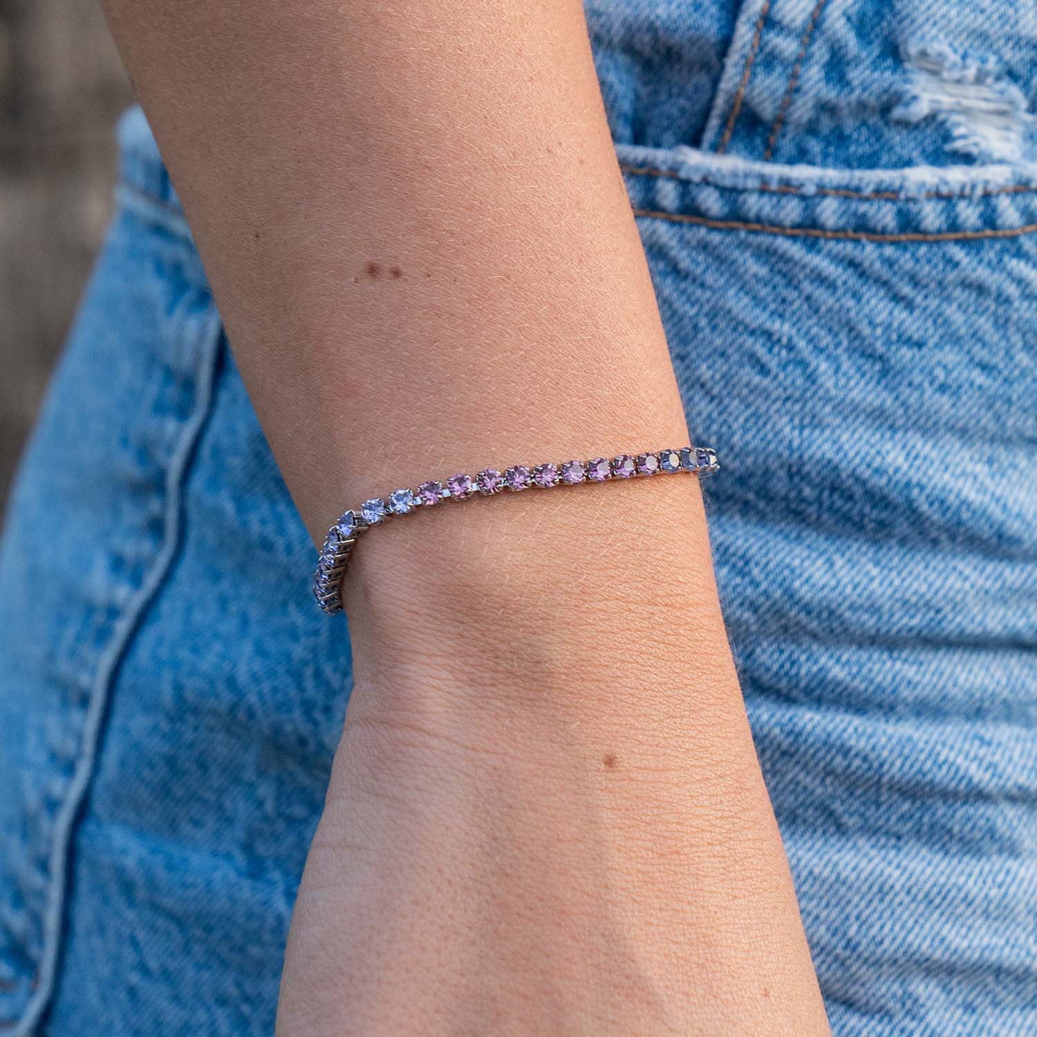 Enhance your style with our Meaningful Colors Tennis Bracelet. This elegant bracelet features a gradient of vibrant stones, each color representing unique virtues: