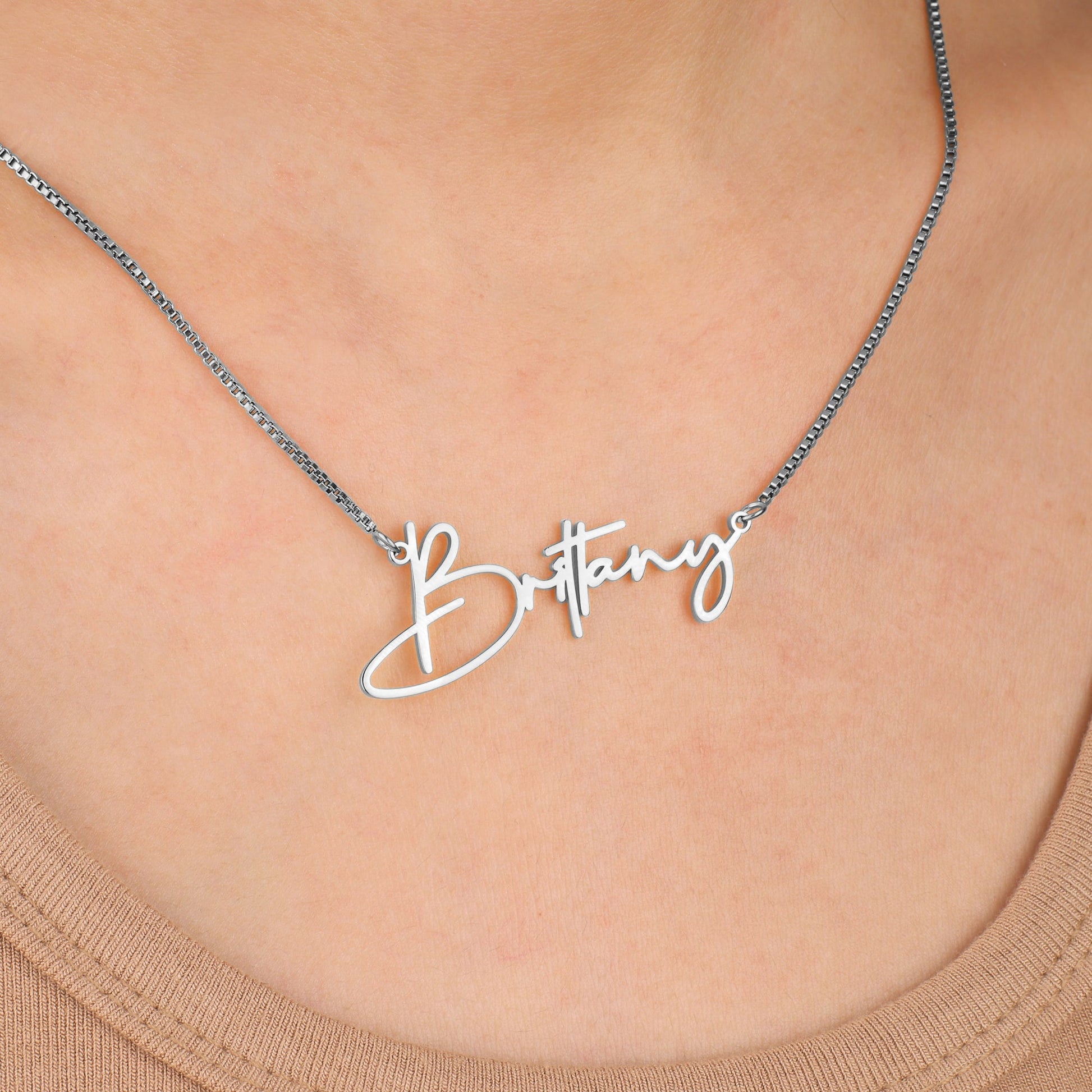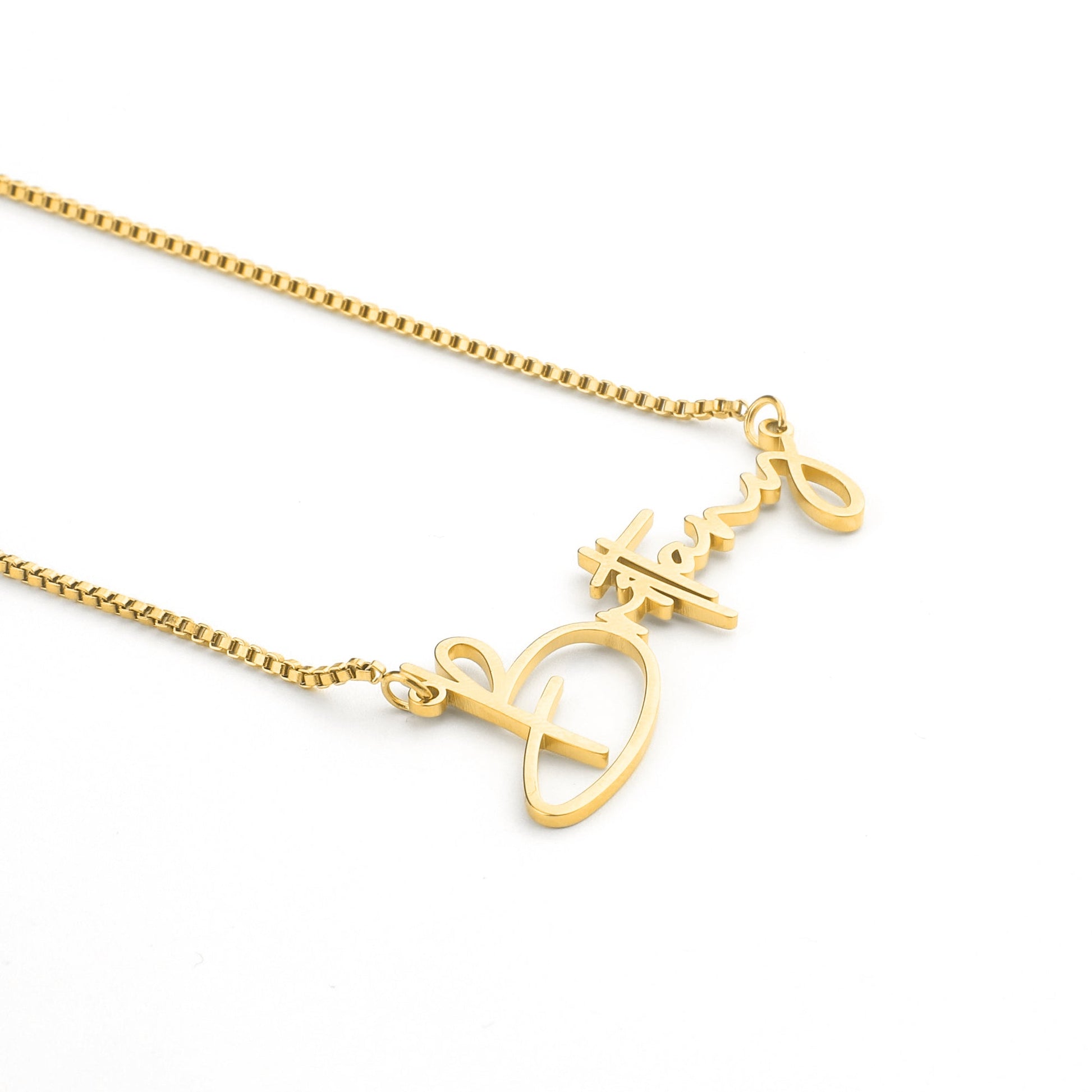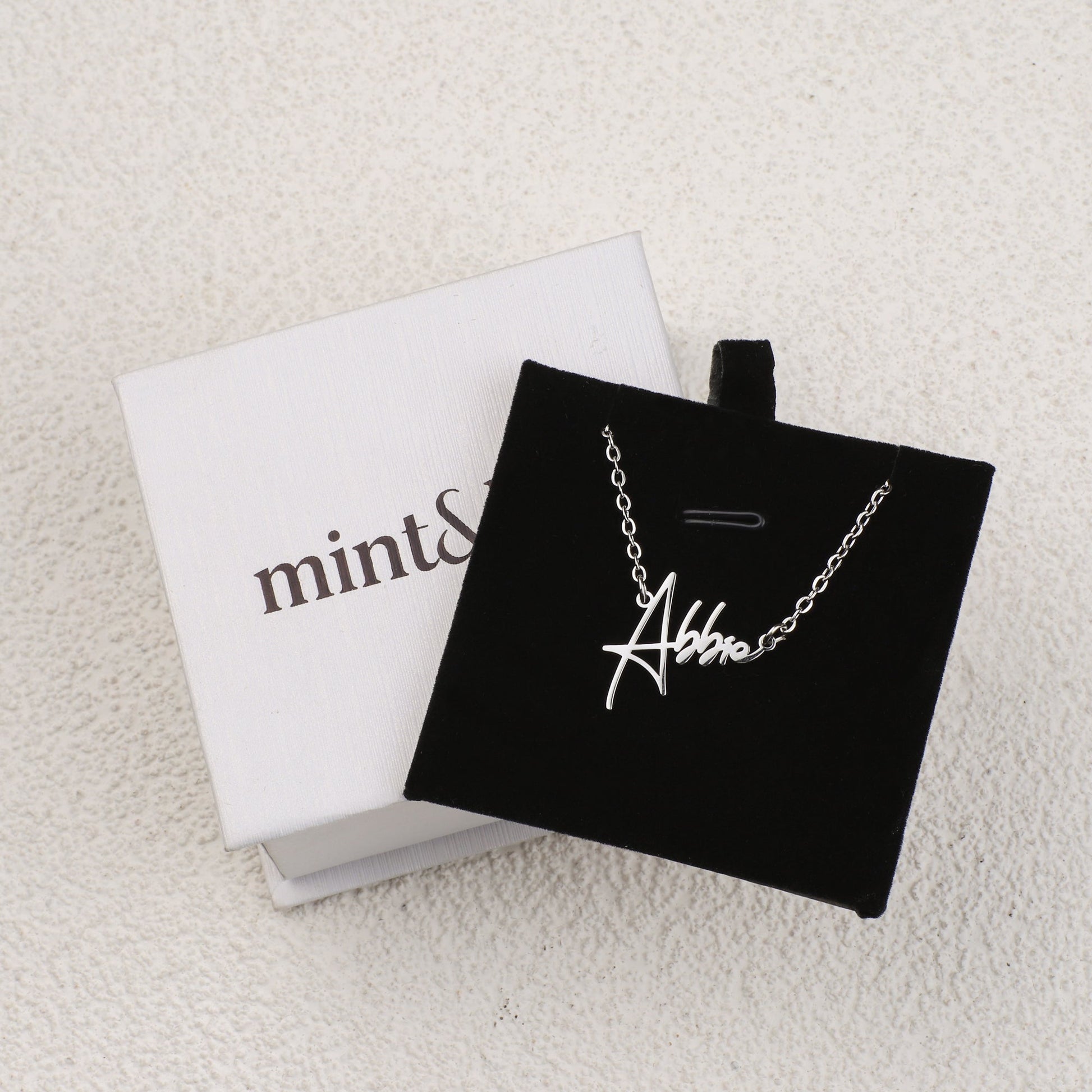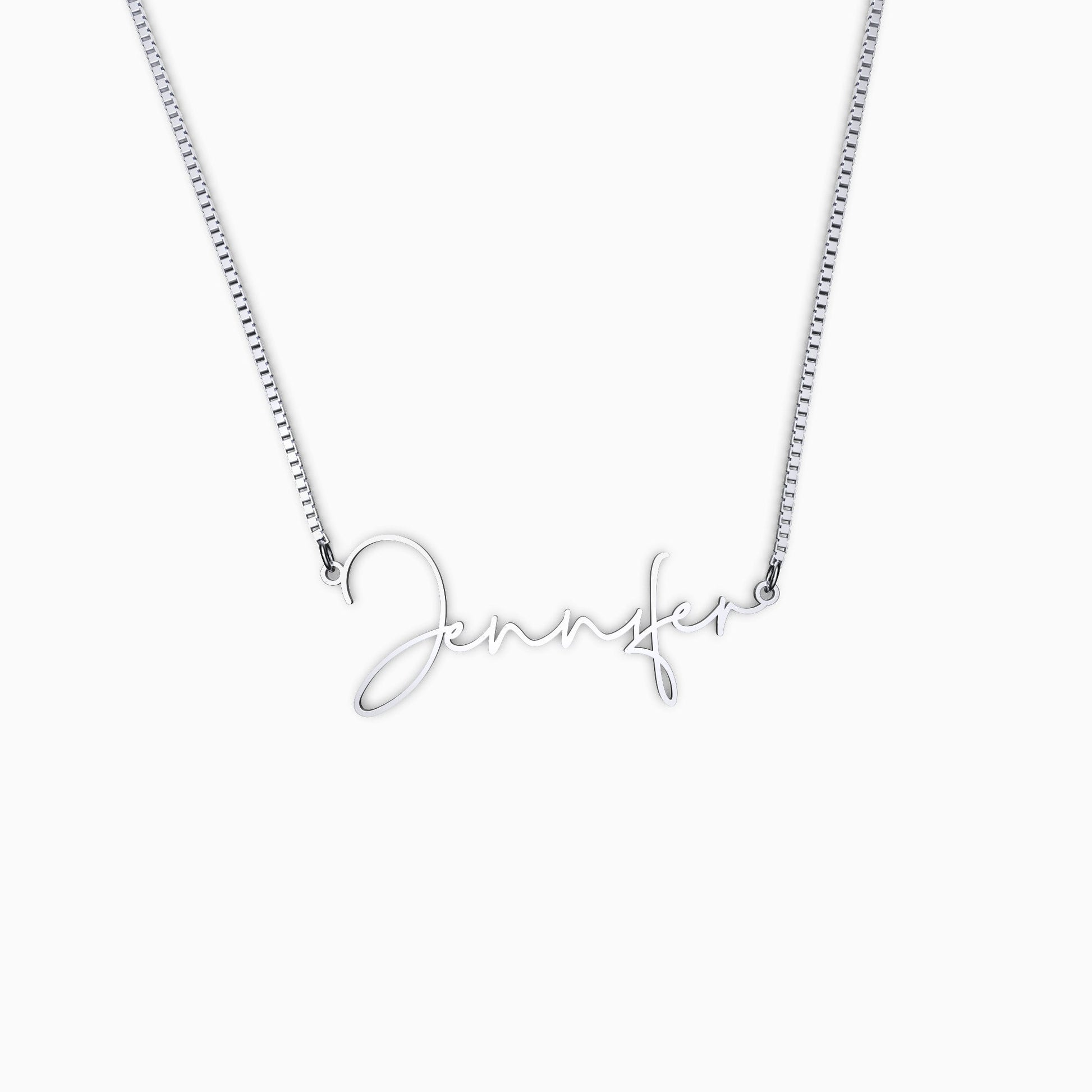 The perfect gift for any special occasion, this modern name necklace is a stylish accessory to add to your loved one's wardrobe. Crafted from 18k Gold, Rose Gold and Silver, the necklace features a unique handwriting style font, and comes with a 16" + 2" chain. The necklace is the perfect way to show your love for someone special. It is a timeless piece that will never go out of style.