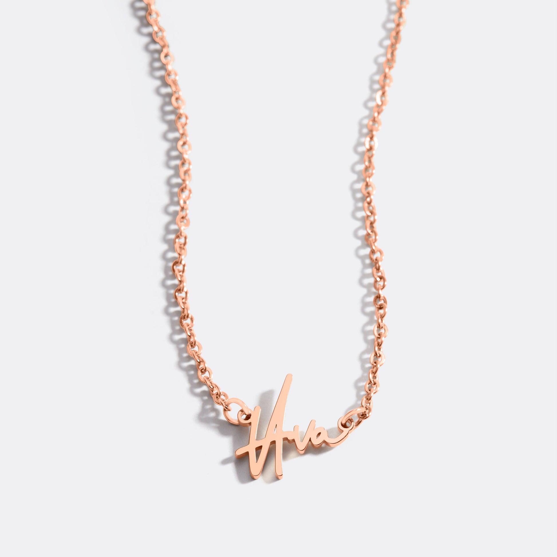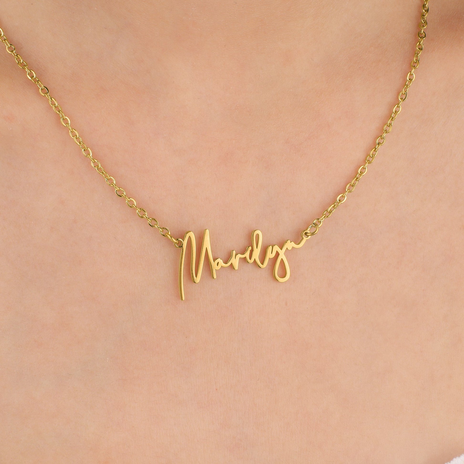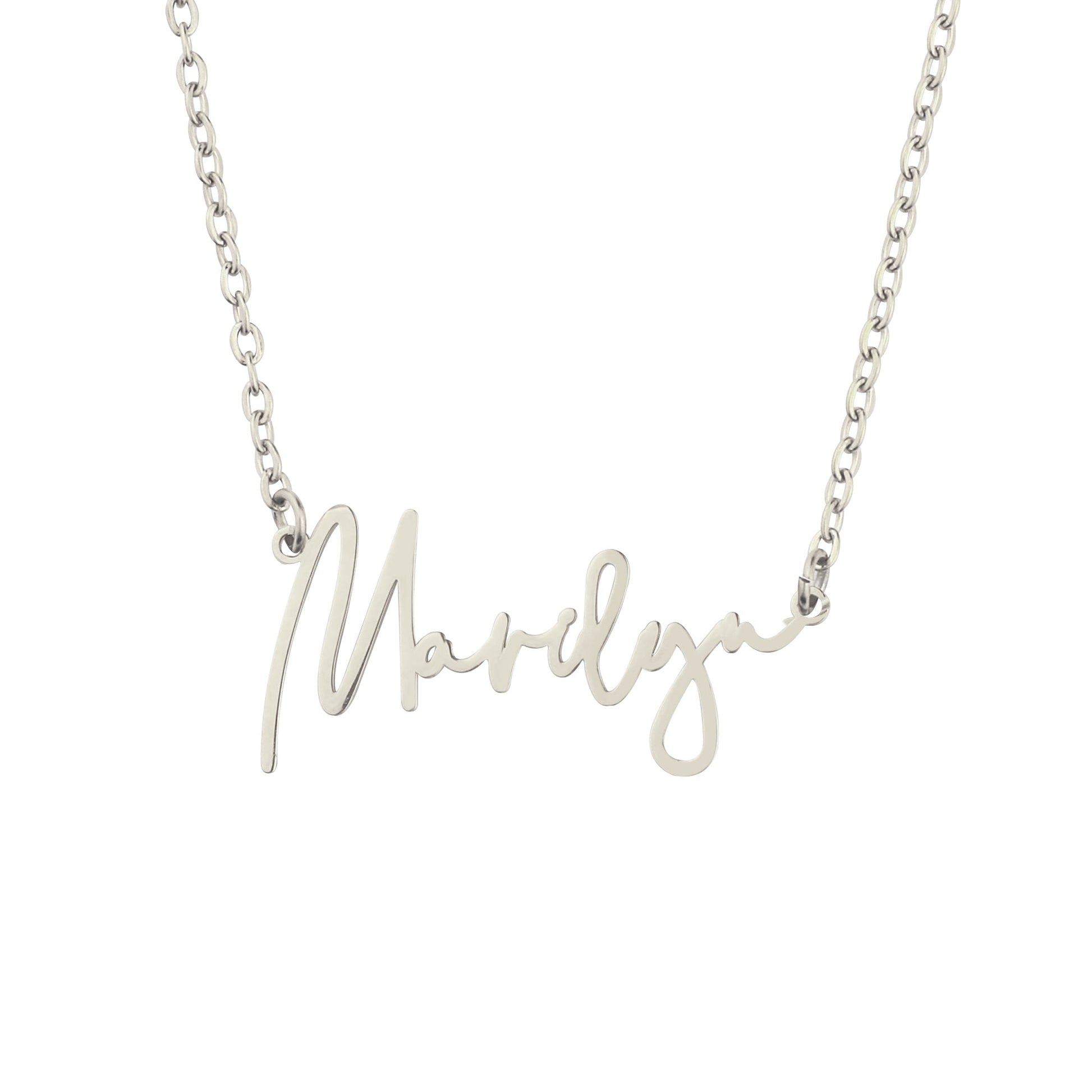 Our Monroe Name Necklace is crafted from the highest quality materials. The necklace is available in 18k gold plated, 18k rose gold plated, silver, and 316L stainless steel base. It is hypoallergenic, tarnish-proof, and waterproof. The necklace comes with an 18" chain. The pendant is engraved with the name of your choice in a classic, timeless font. This necklace is perfect for expressing yourself and makes a great gift for any occasion.