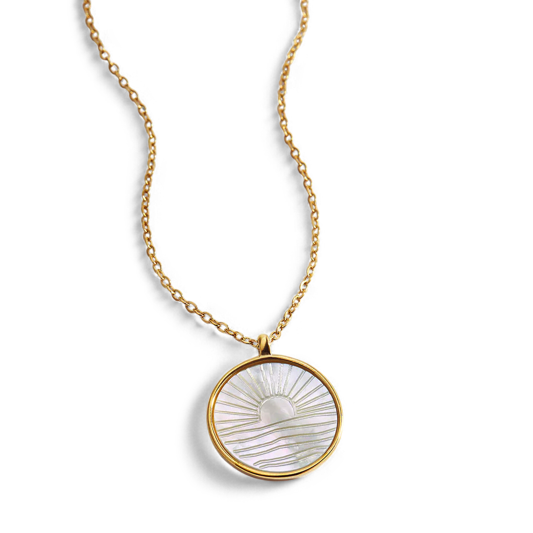 This exquisite piece features a radiant mother of pearl set in a design that mimics the rising sun, offering a symbol of new beginnings and natural elegance. Ideal for everyday inspiration or as a meaningful gift.
