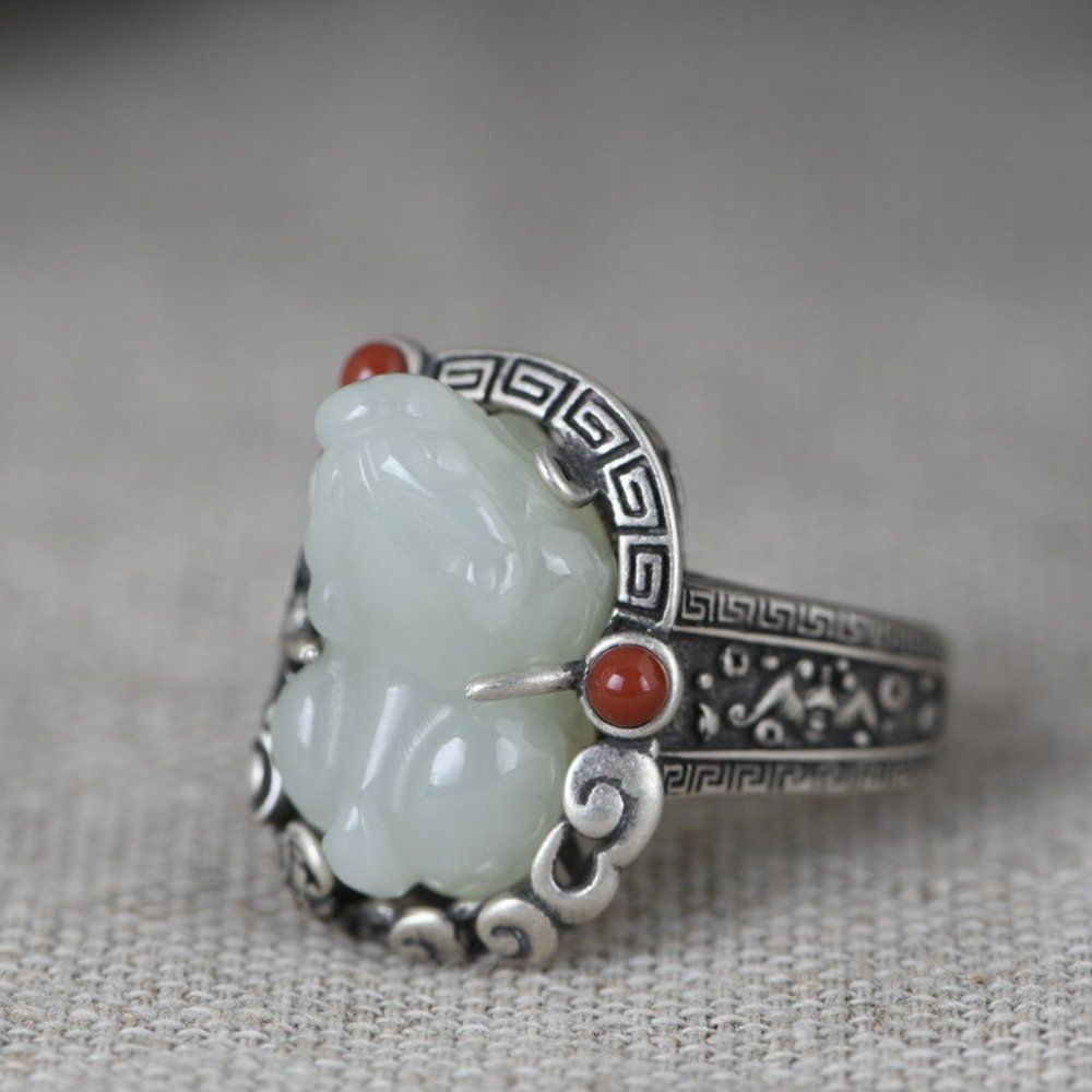 Natural Jade Pi Yao Prosperity Ring
