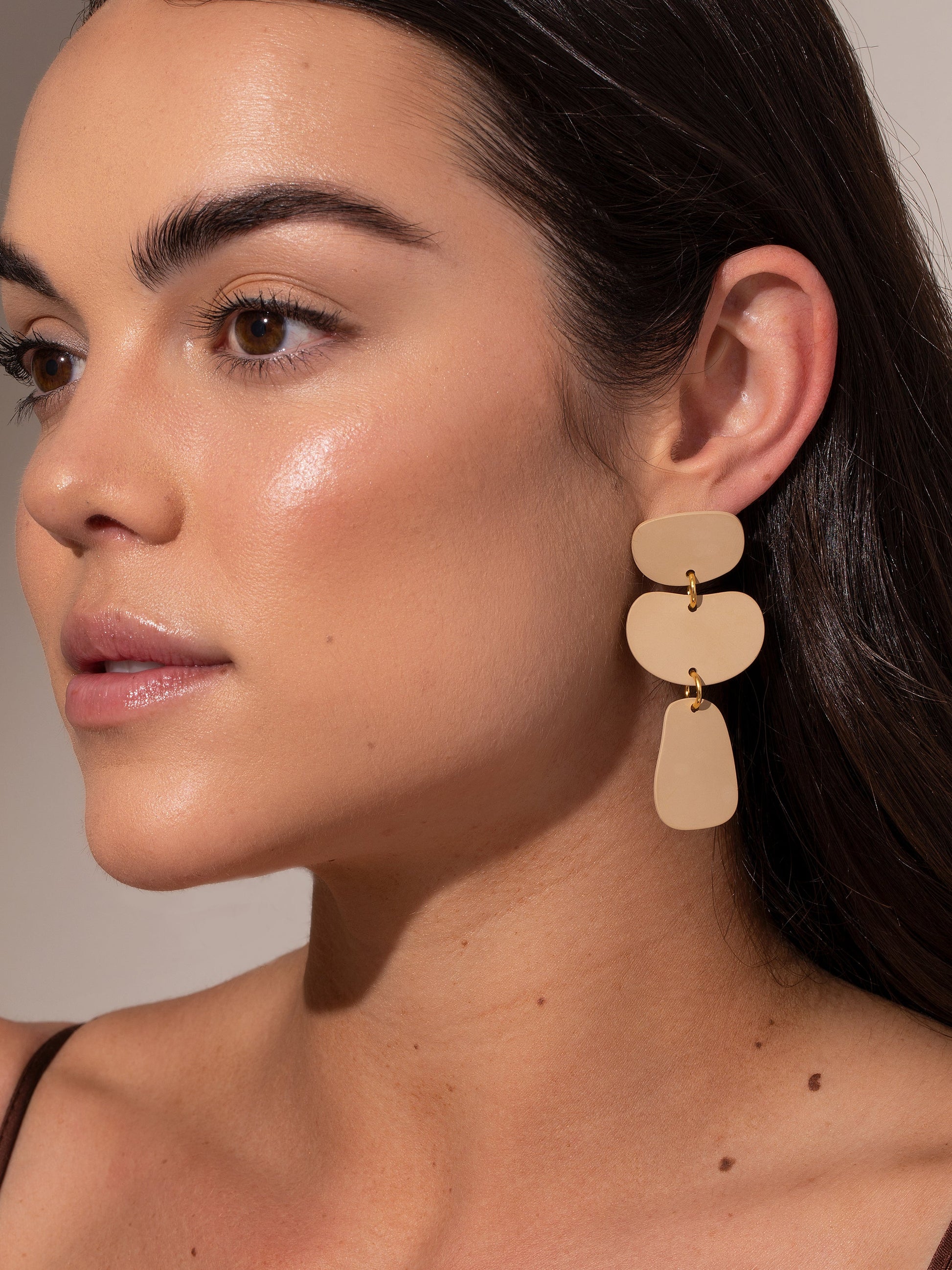 These abstract earrings deserve a spot in an art museum and on your ears. The Nudist Earrings have quickly become everyone’s favorite style and Kristin’s vacation staple, which is why we added even more colors! Stack your favorite color with simple gold earrings to really let these unique statement earrings shine.