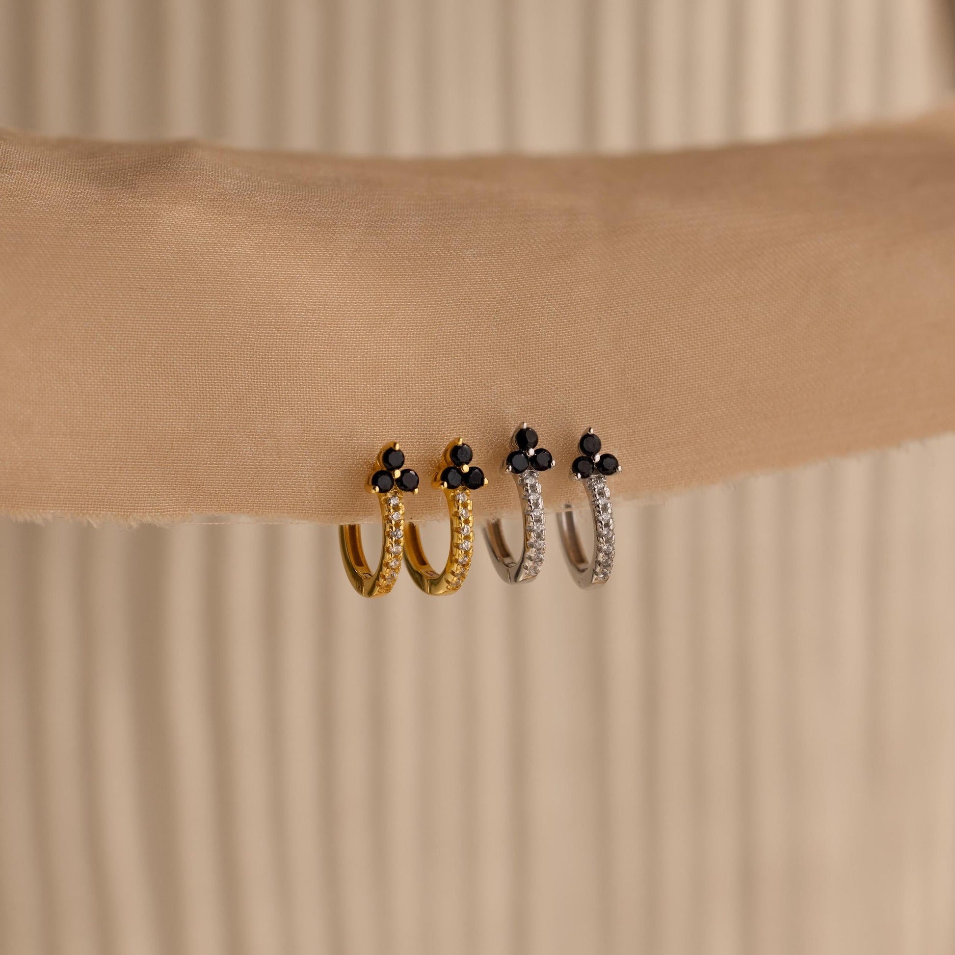 Elevate your style with our Onyx Lily Huggies, featuring sleek black onyx gemstones set in a delicate clover shape. Perfect for those looking to bring a little fortune and sophistication to their everyday look, these dainty hoops are a stylish addition to any jewelry collection ♡