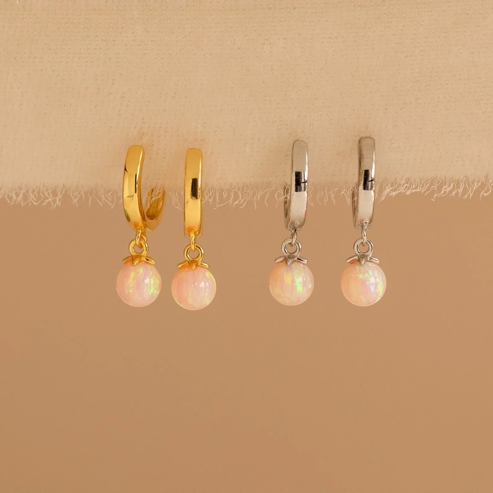 - Style D) Bundle Set of 3 (Save 10%): Includes Pink Opal Drop Huggies, Opal Moon Mini Hoops, Dainty Opal Teardrop Studs