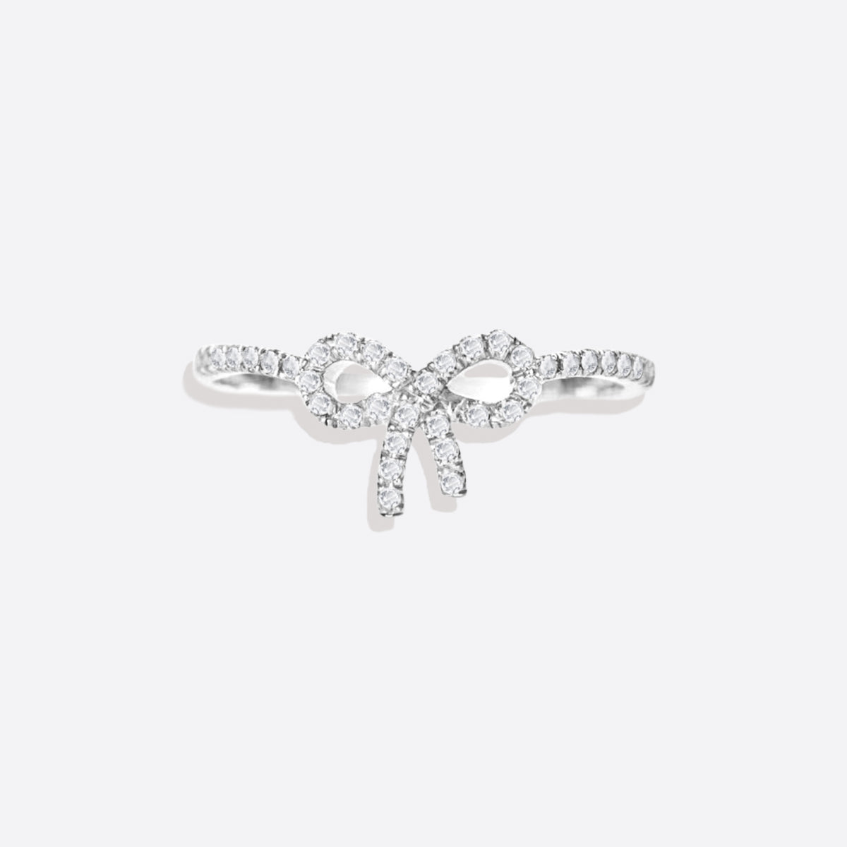 This charming piece features a bow design, encrusted with sparkling pave set stones that catch the light beautifully. Perfect for dressing up any look or as a delightful gift for someone special.